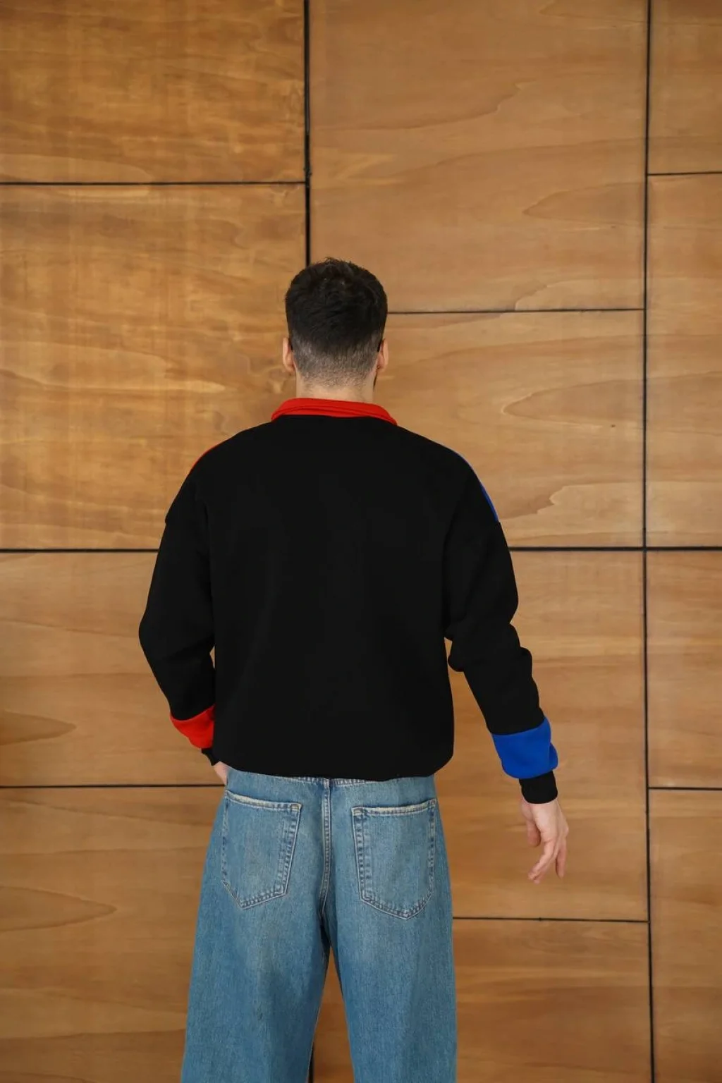 Siyah PM Polo Yaka Unisex Oversize Sweat