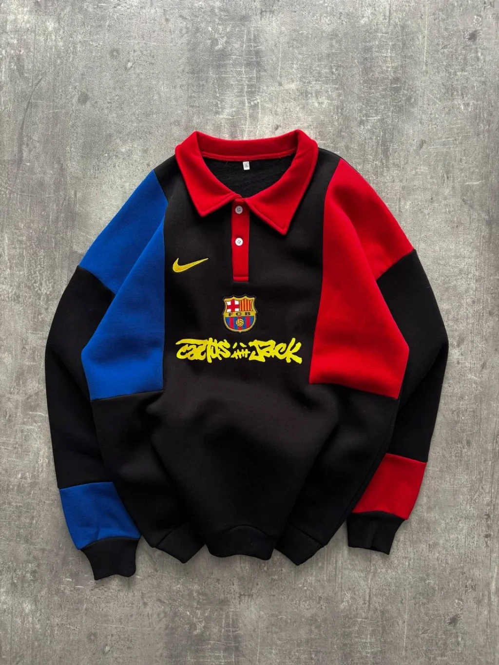 Kırmızı FCB Polo Yaka Unisex Oversize Sweat