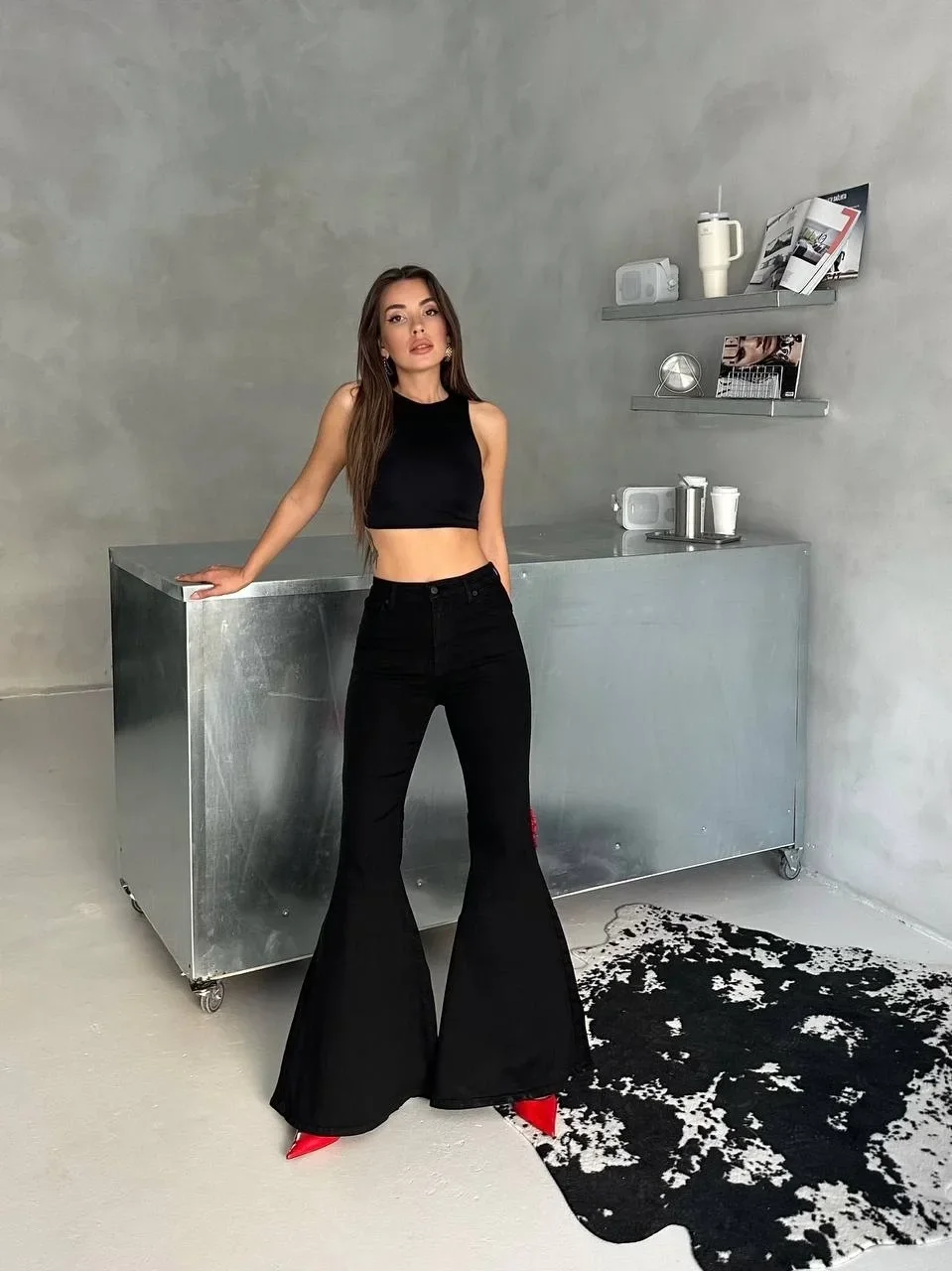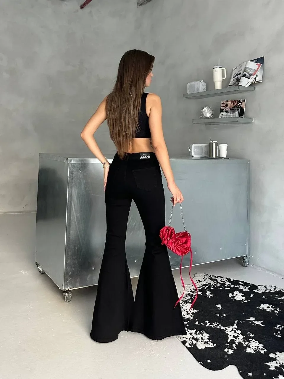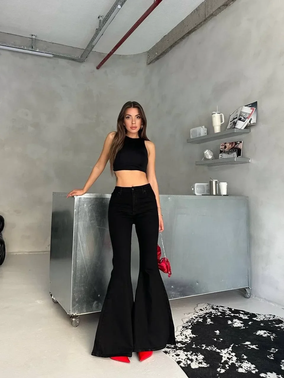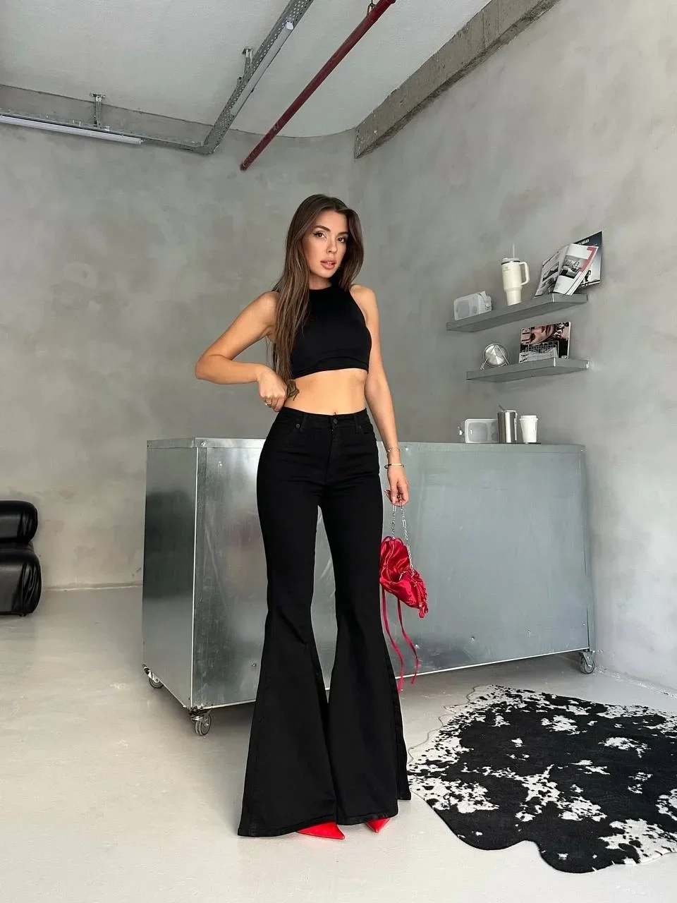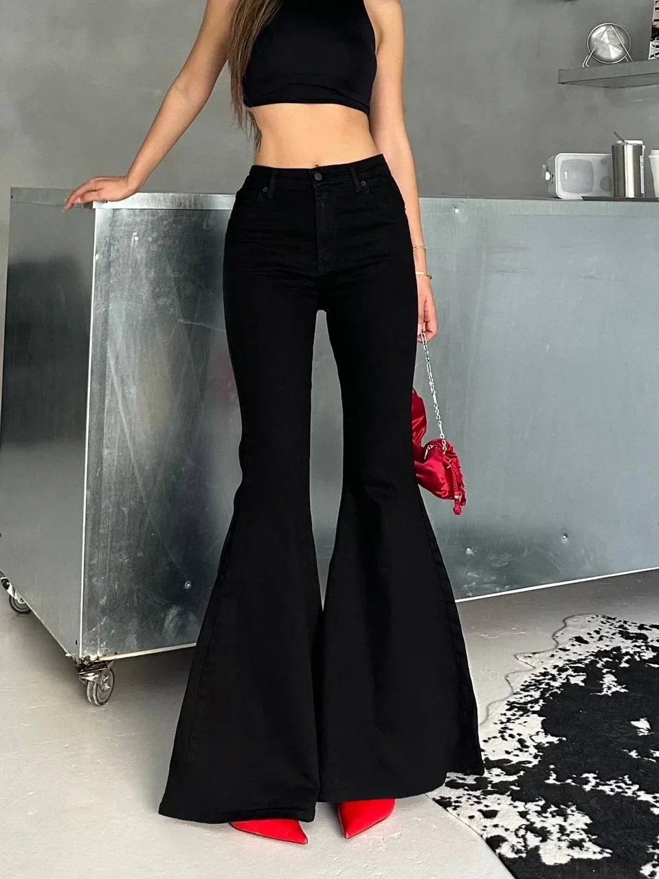 Siyah İspanyol Paça Likralı Kot Pantolon