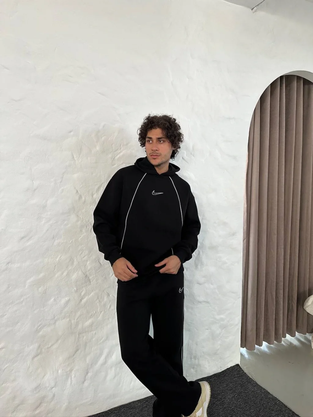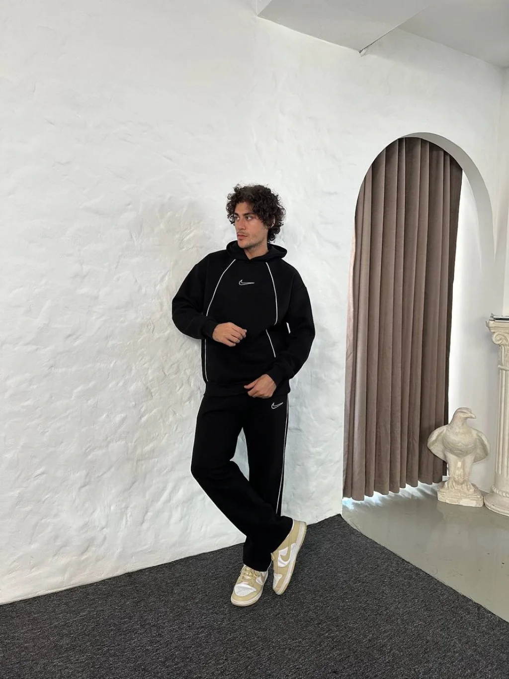 Siyah NK Biyeli Oversize Eşofman Takımı