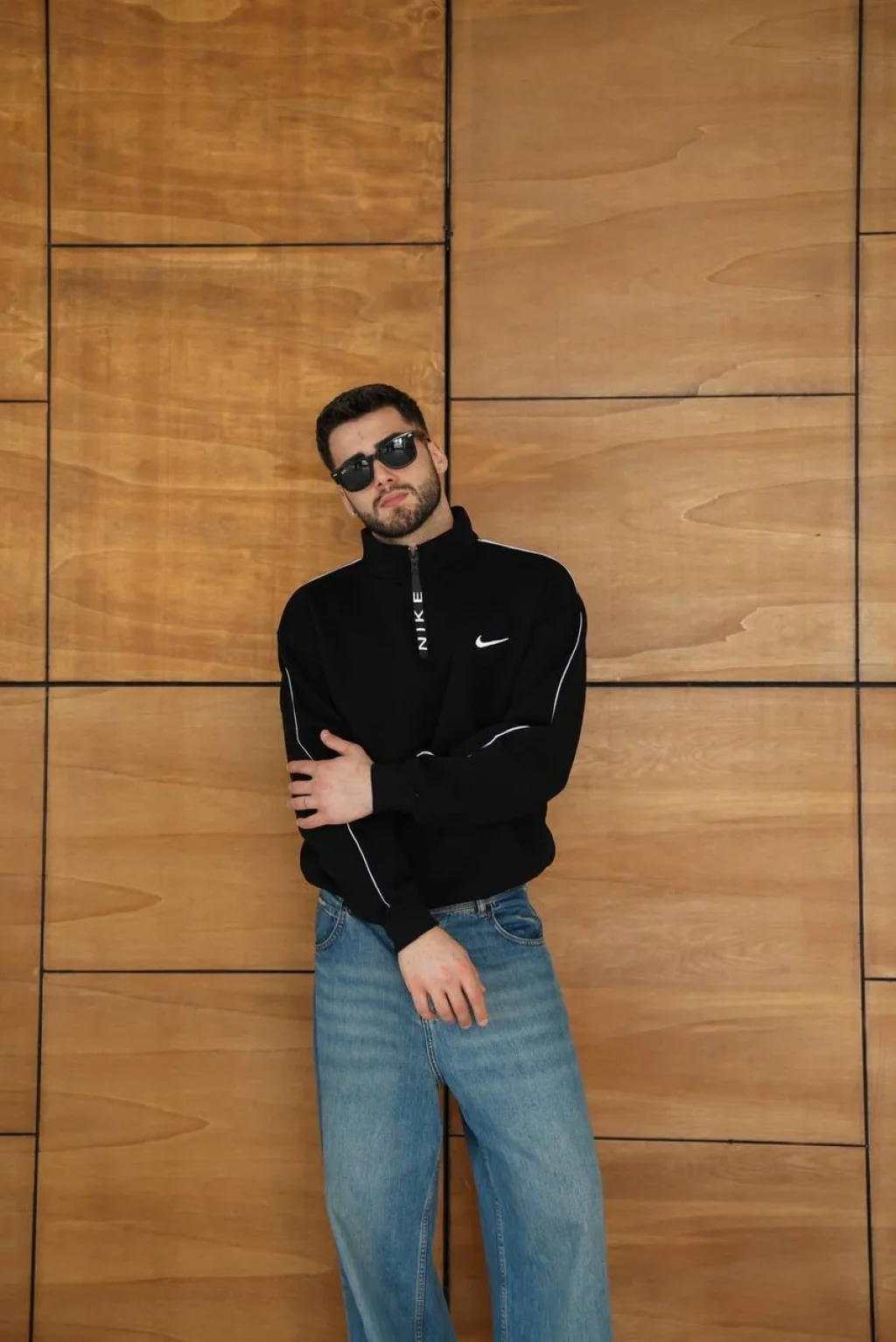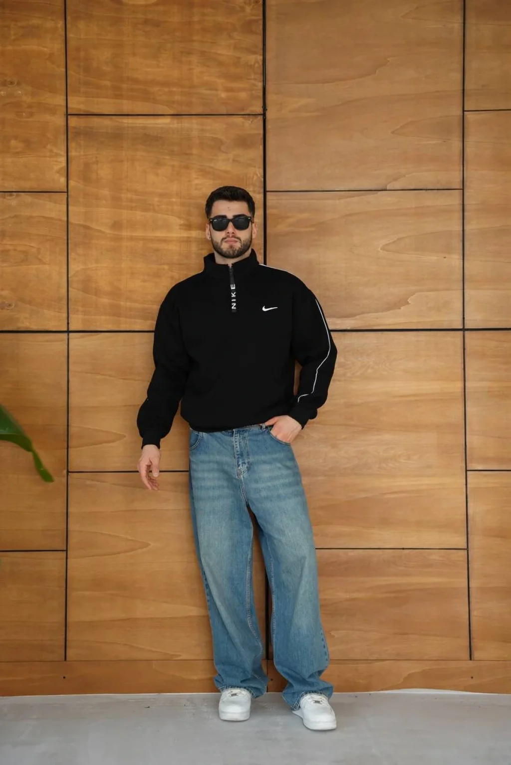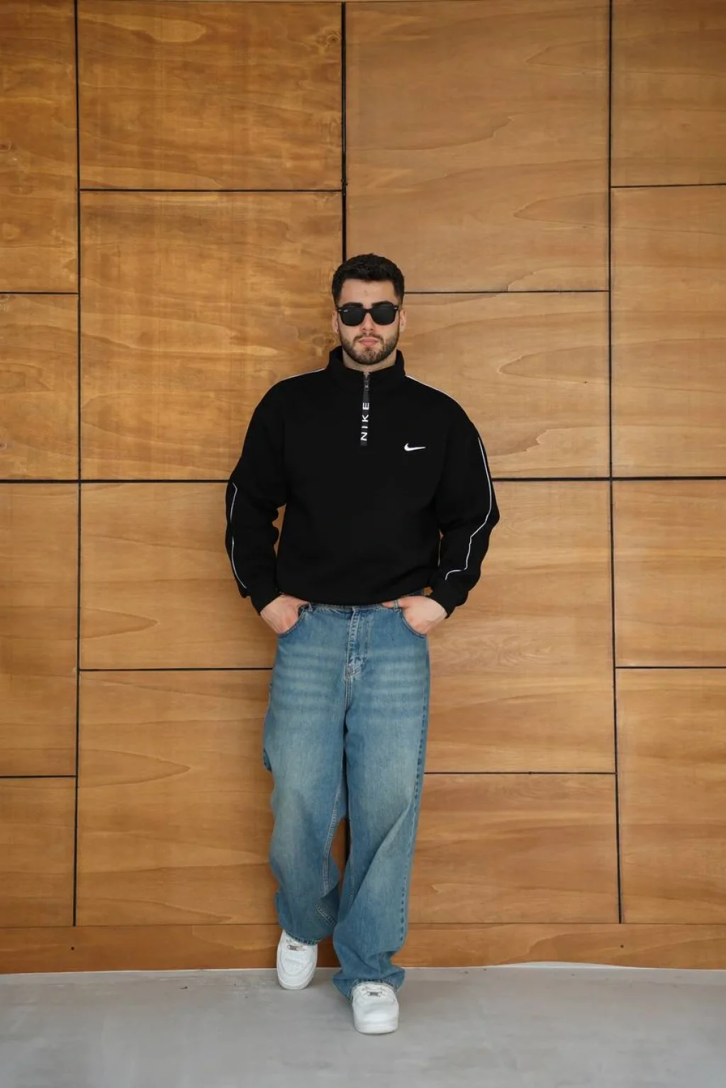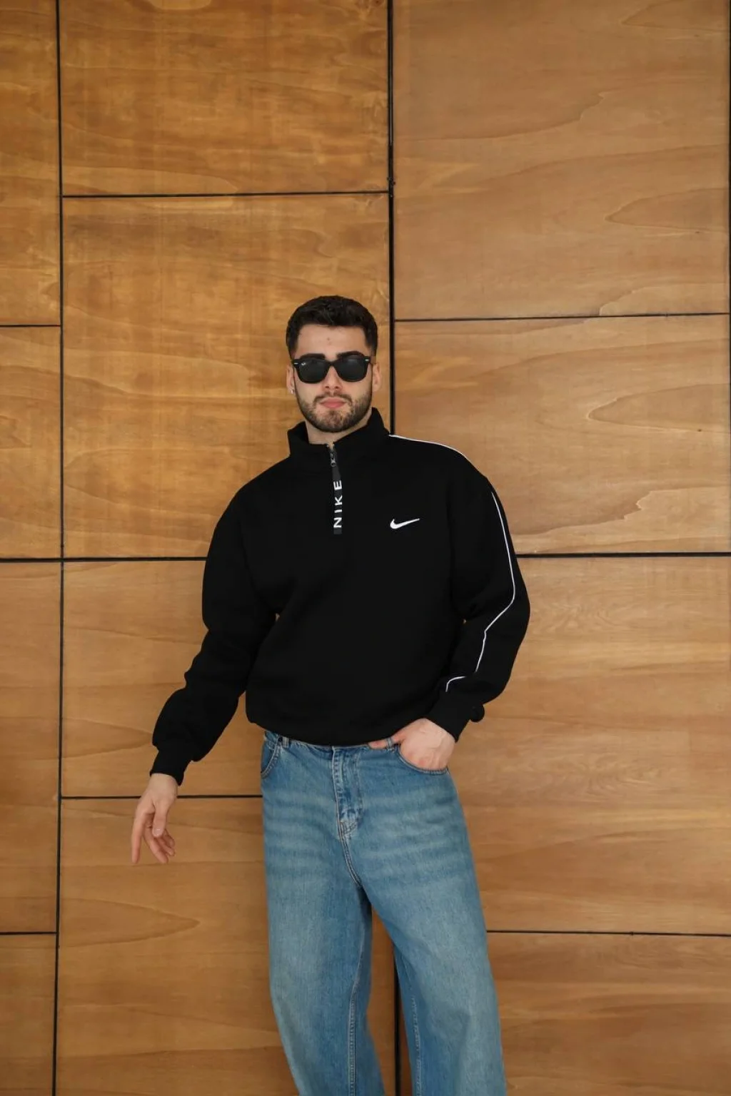 Siyah NK Kol Biyeli Unisex Oversize Sweat