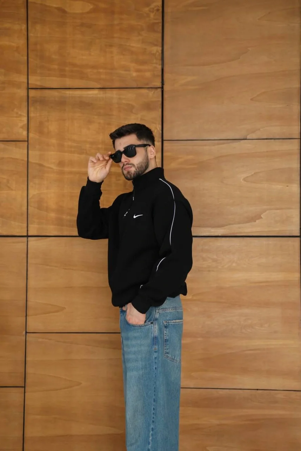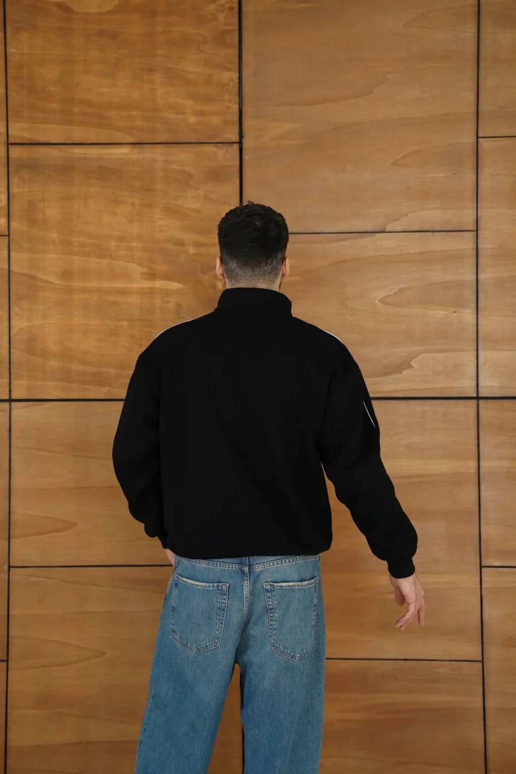 Siyah ADD Üç Şerit Fermuar Yaka Unisex Oversize Sweat