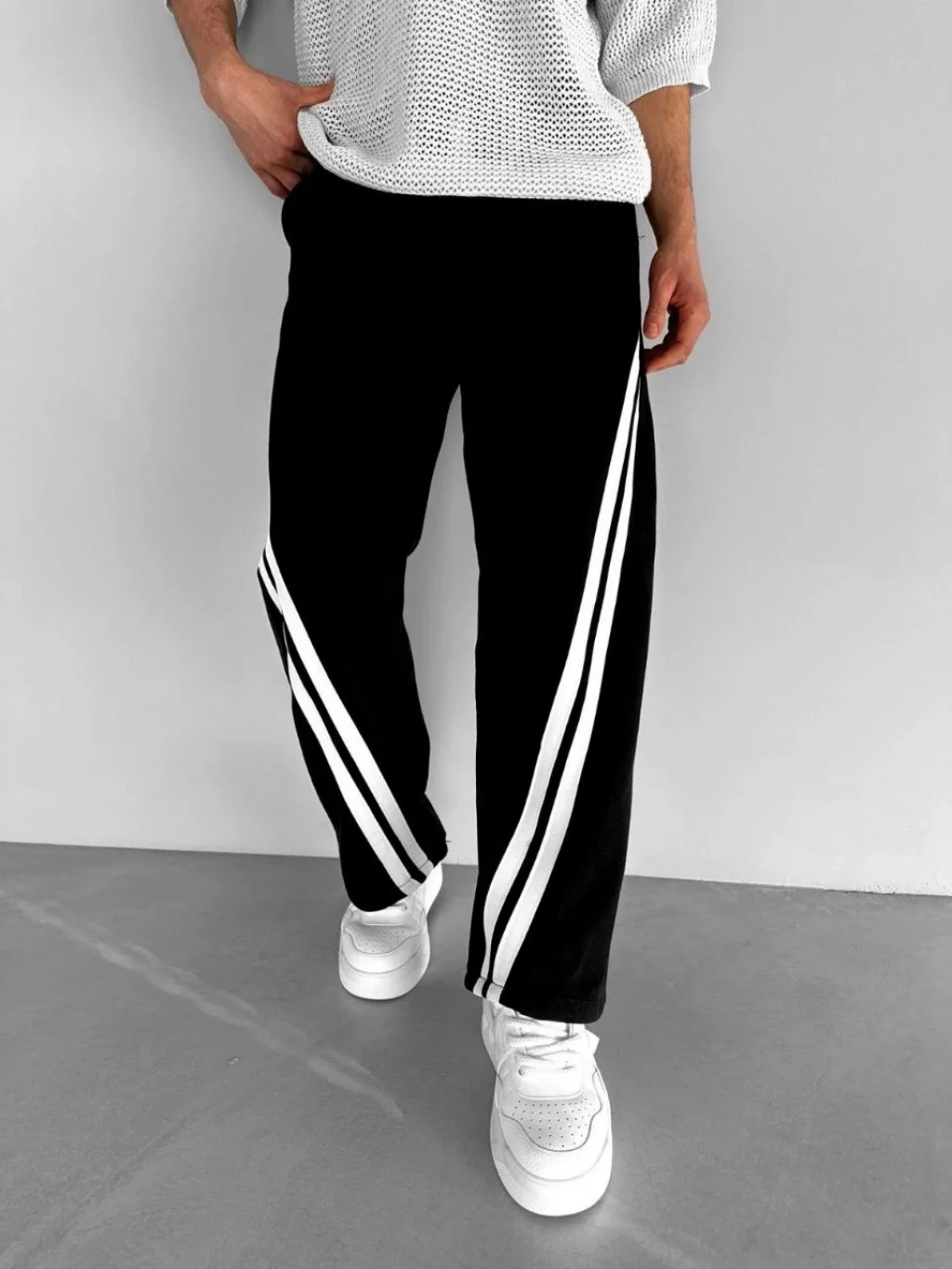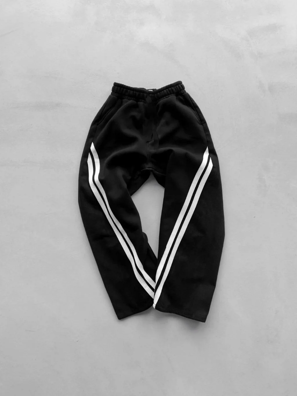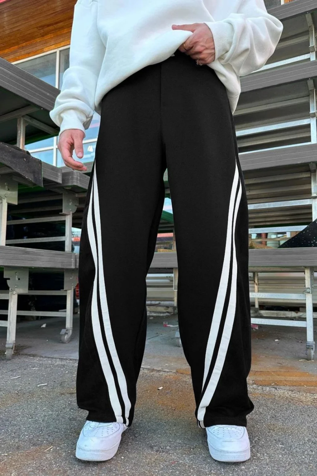 Siyah Çapraz Çift Şerit Oversize Eşofman
