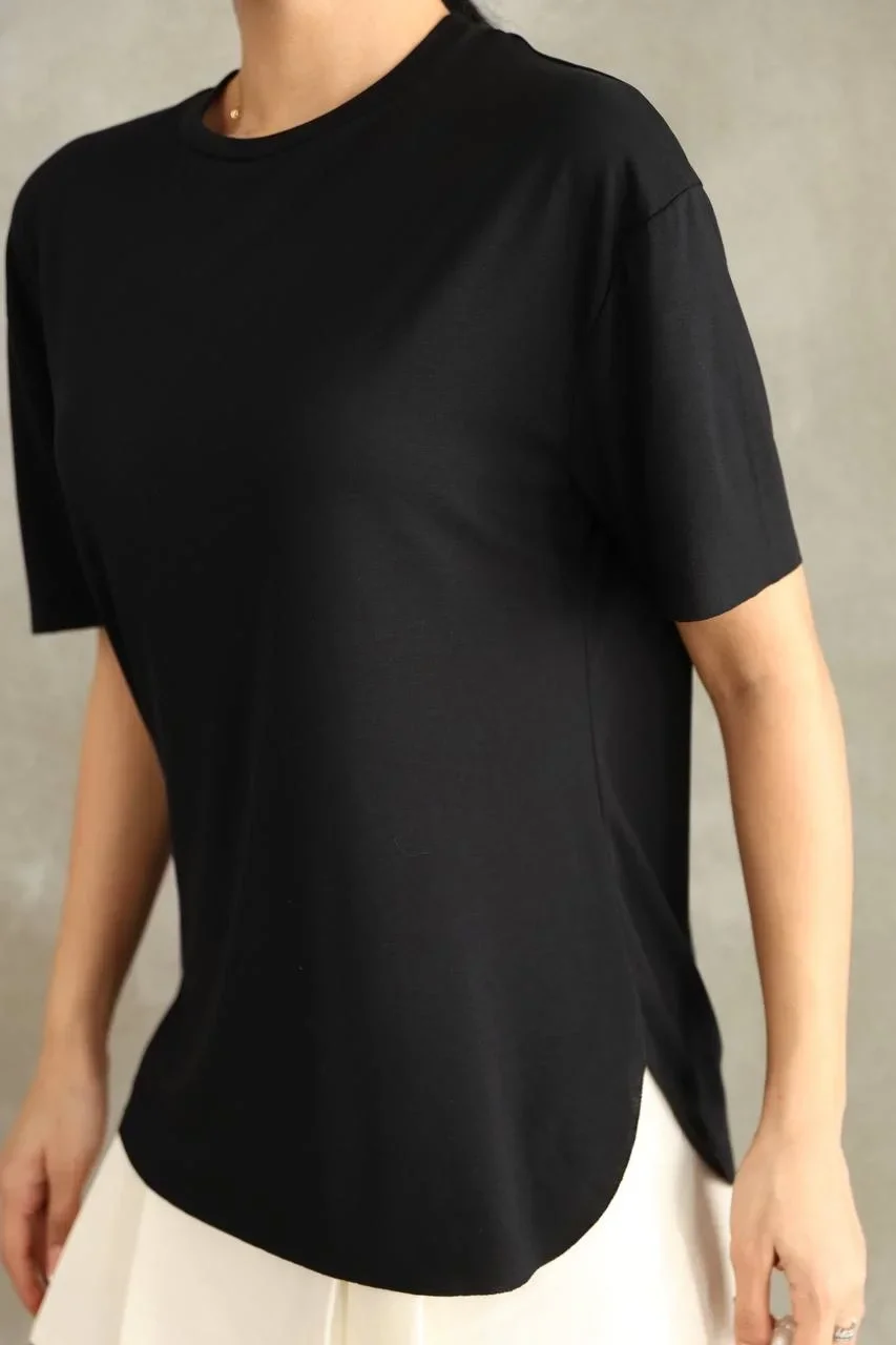 Siyah Oysho Yırtmaçlı Modal Oversize Tshirt