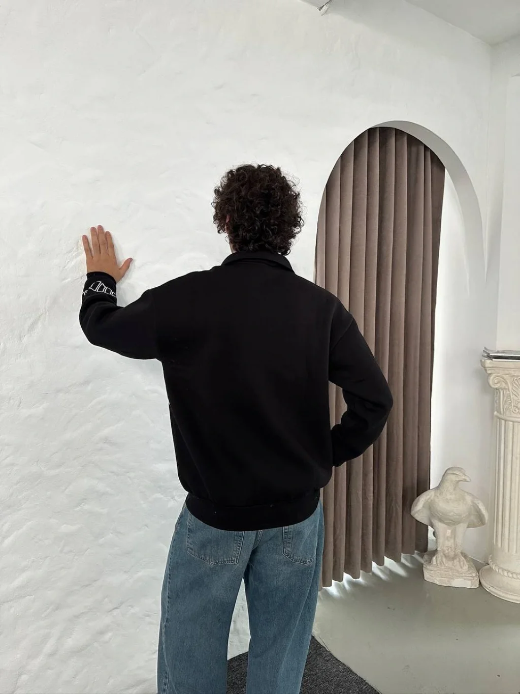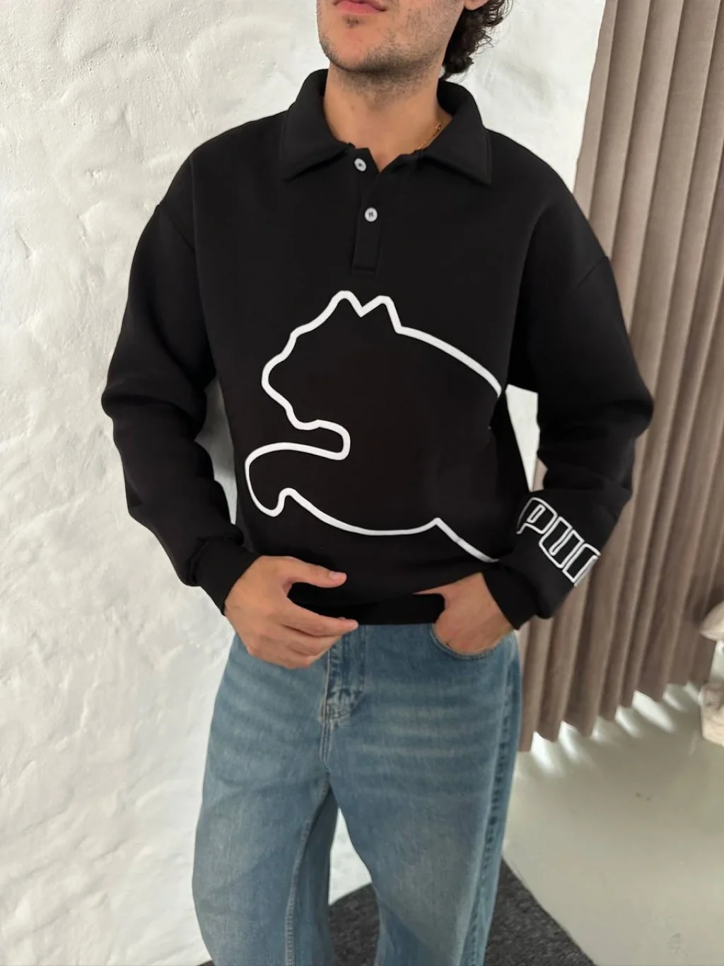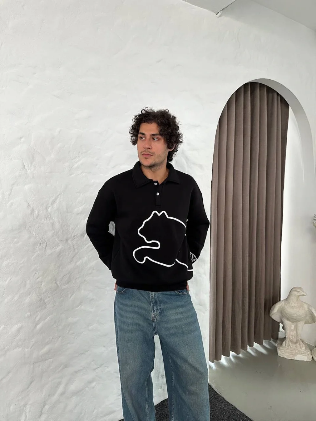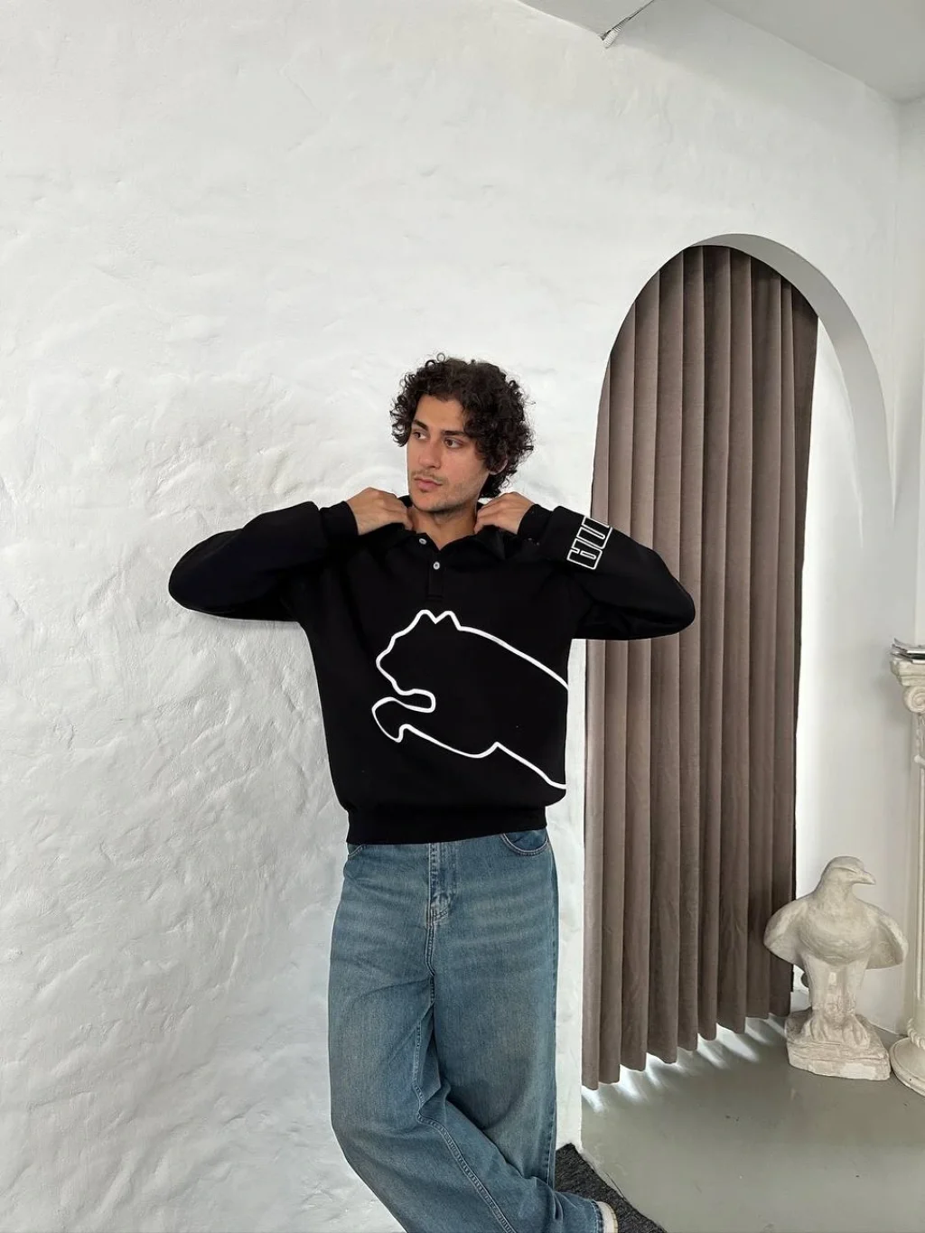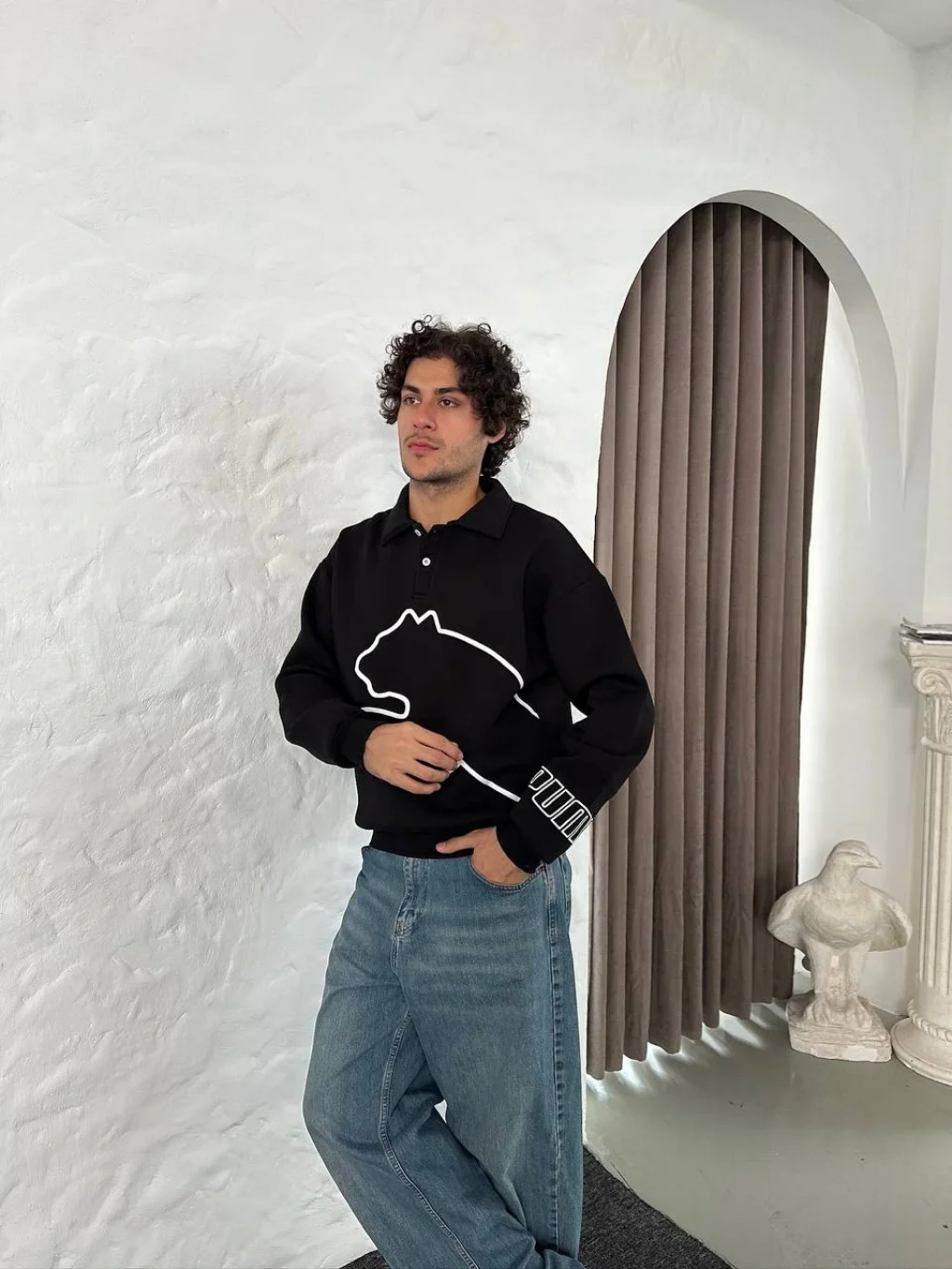 Siyah PM Polo Yaka Unisex Oversize Sweat