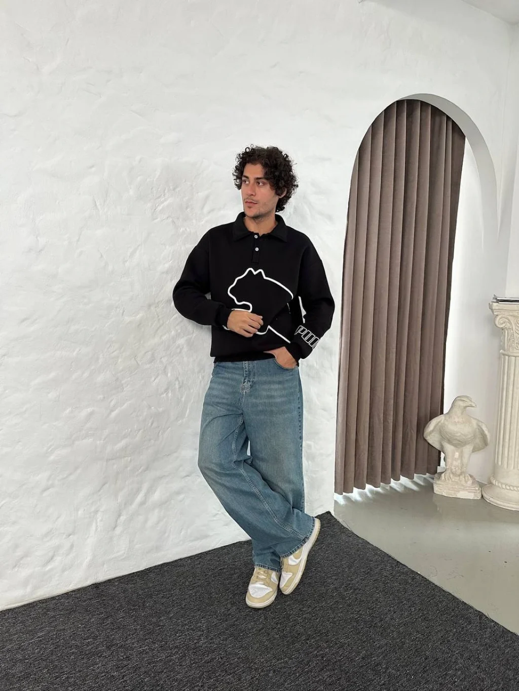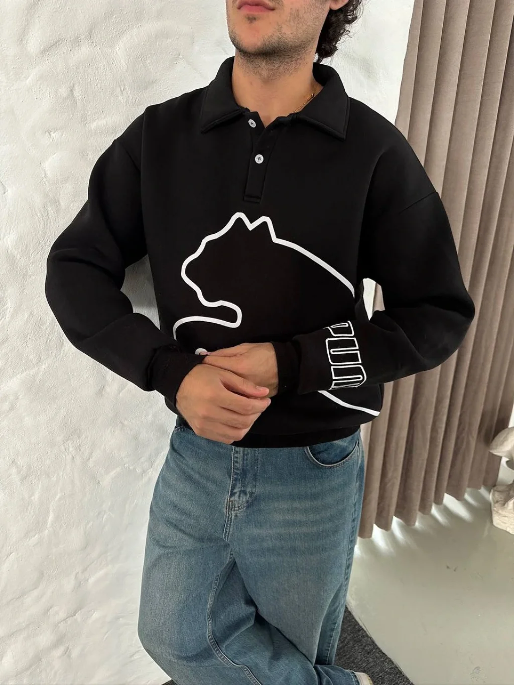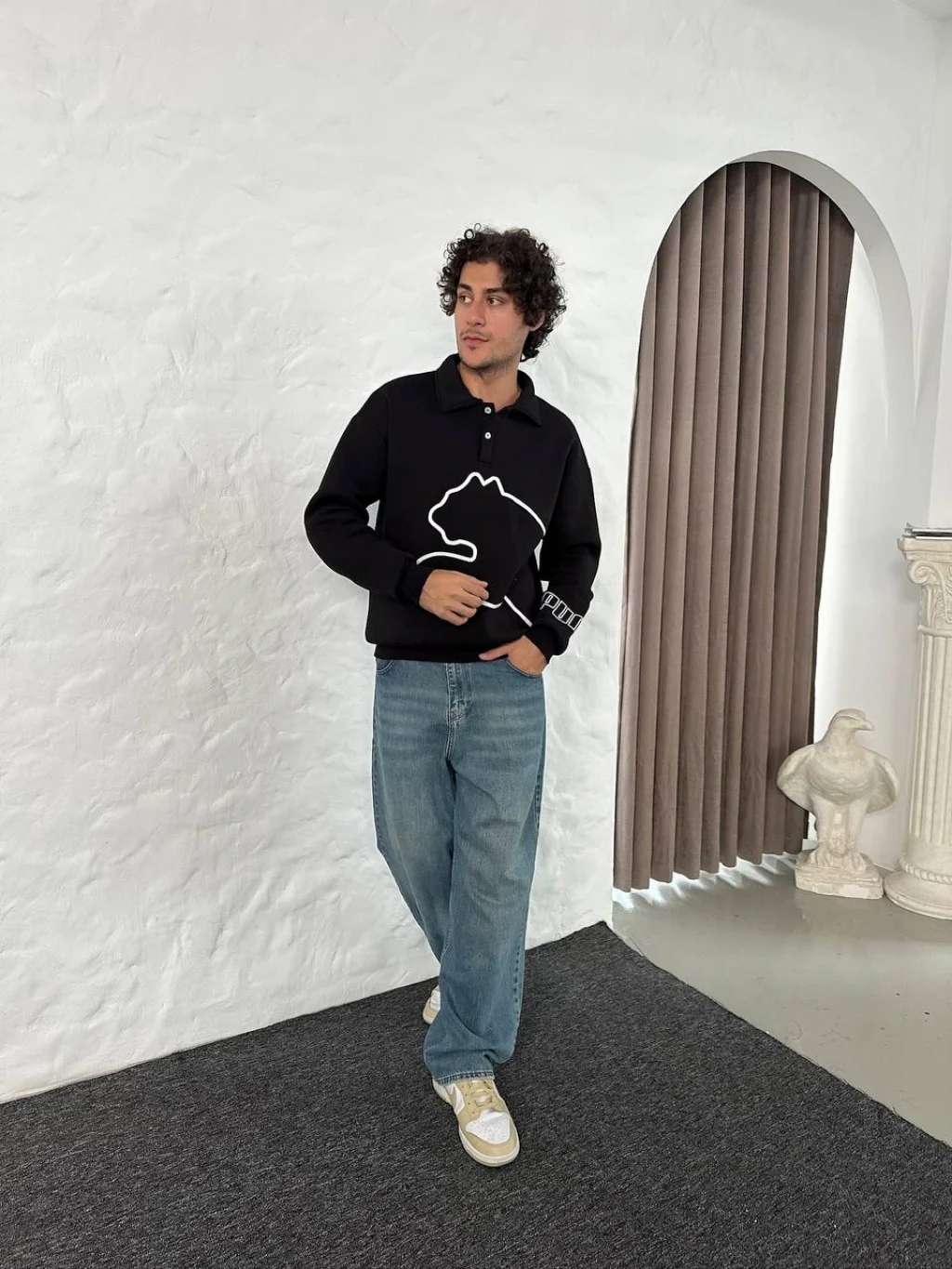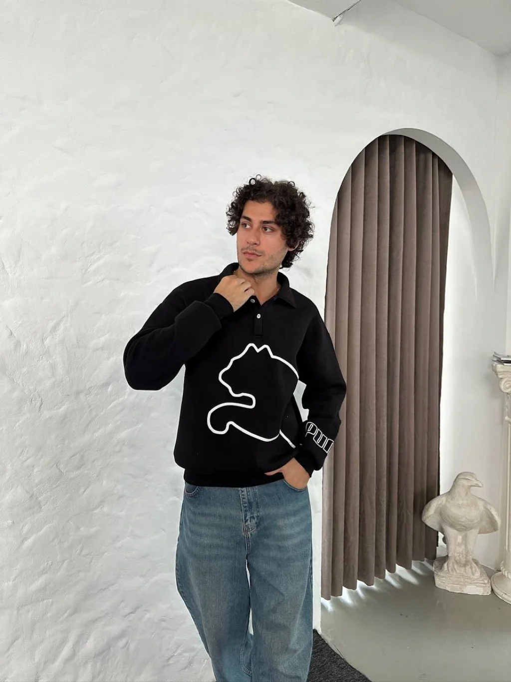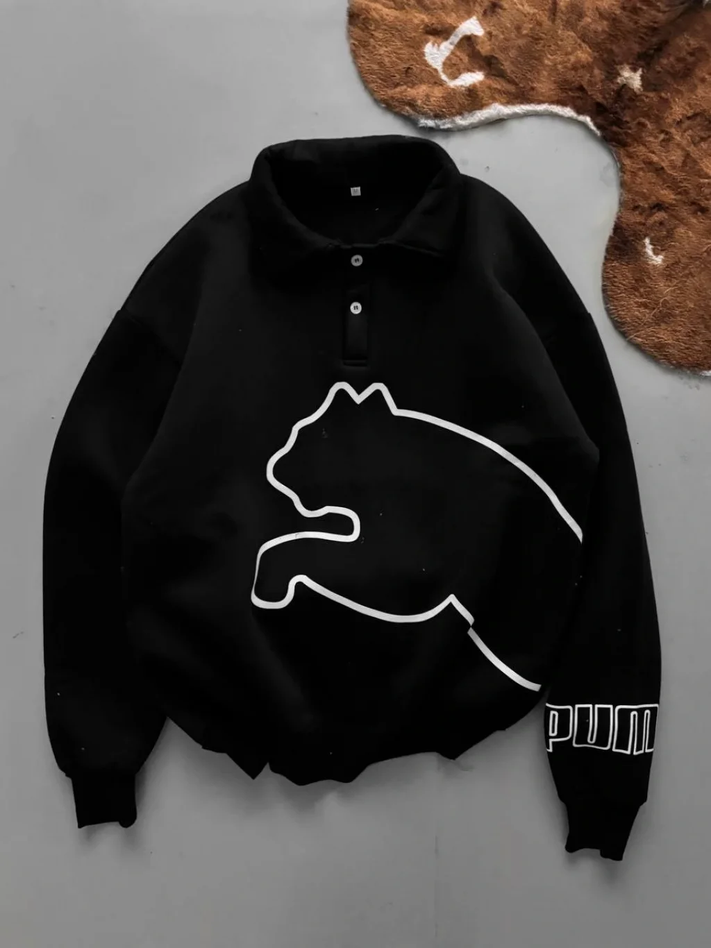 Siyah PM Polo Yaka Unisex Oversize Sweat