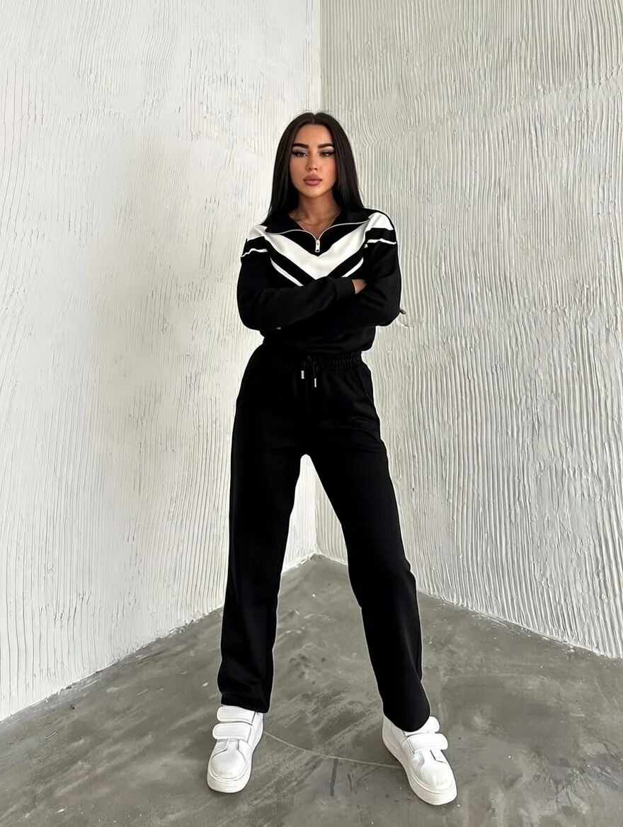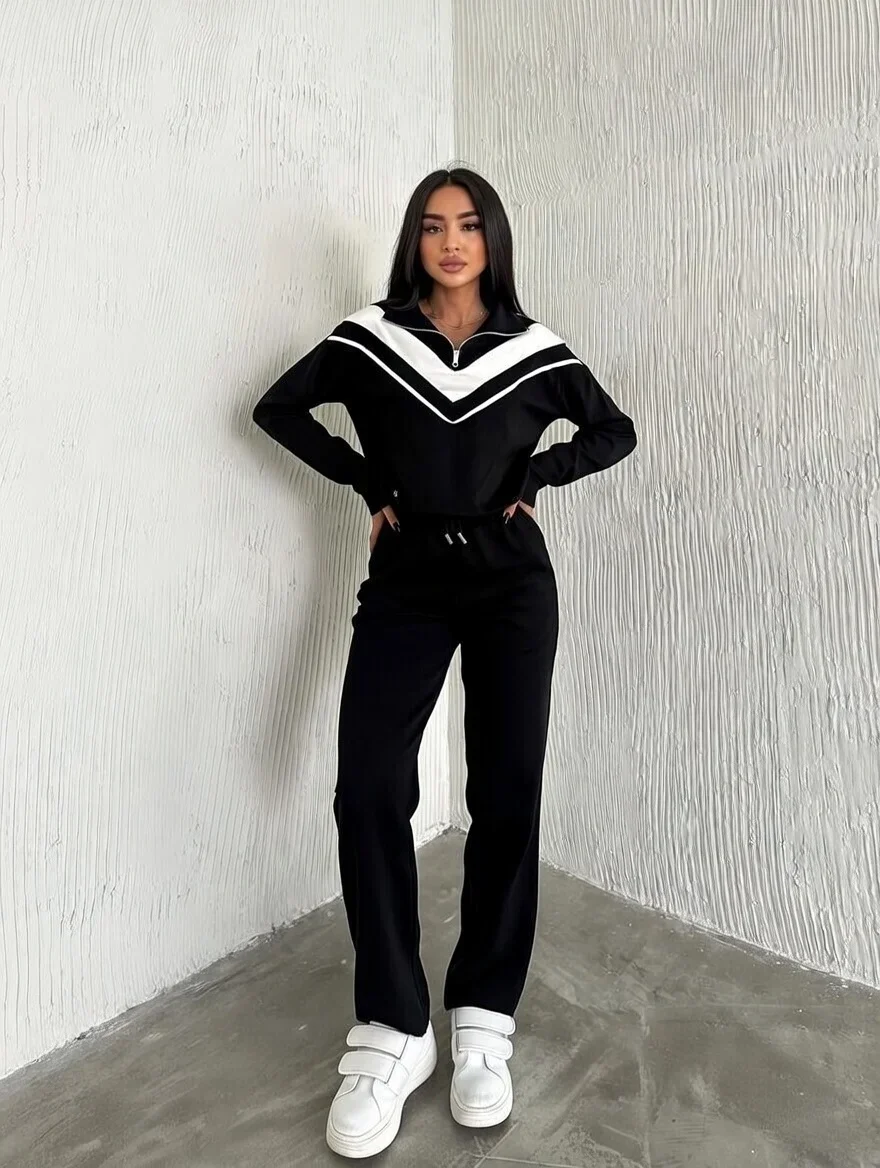 Siyah Şardonlu Modal Garnili Eşofman Takımı
