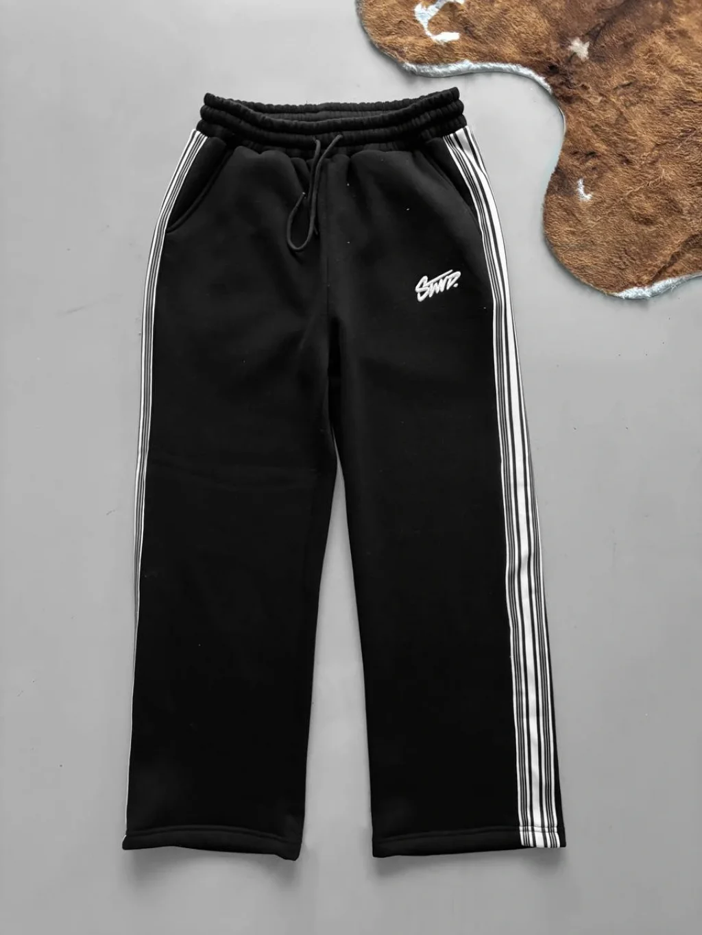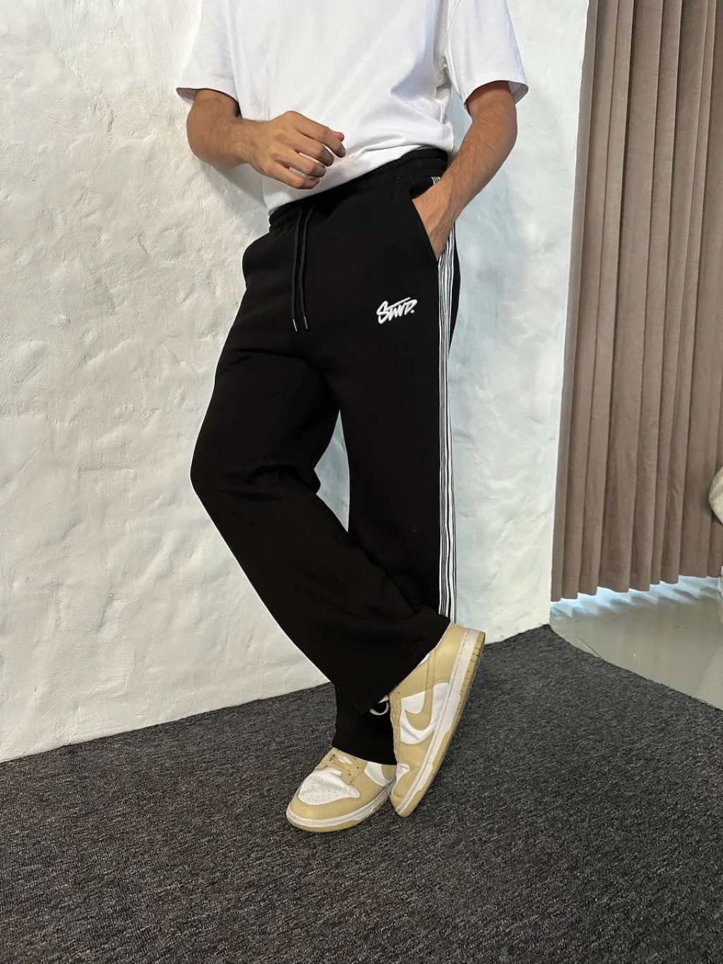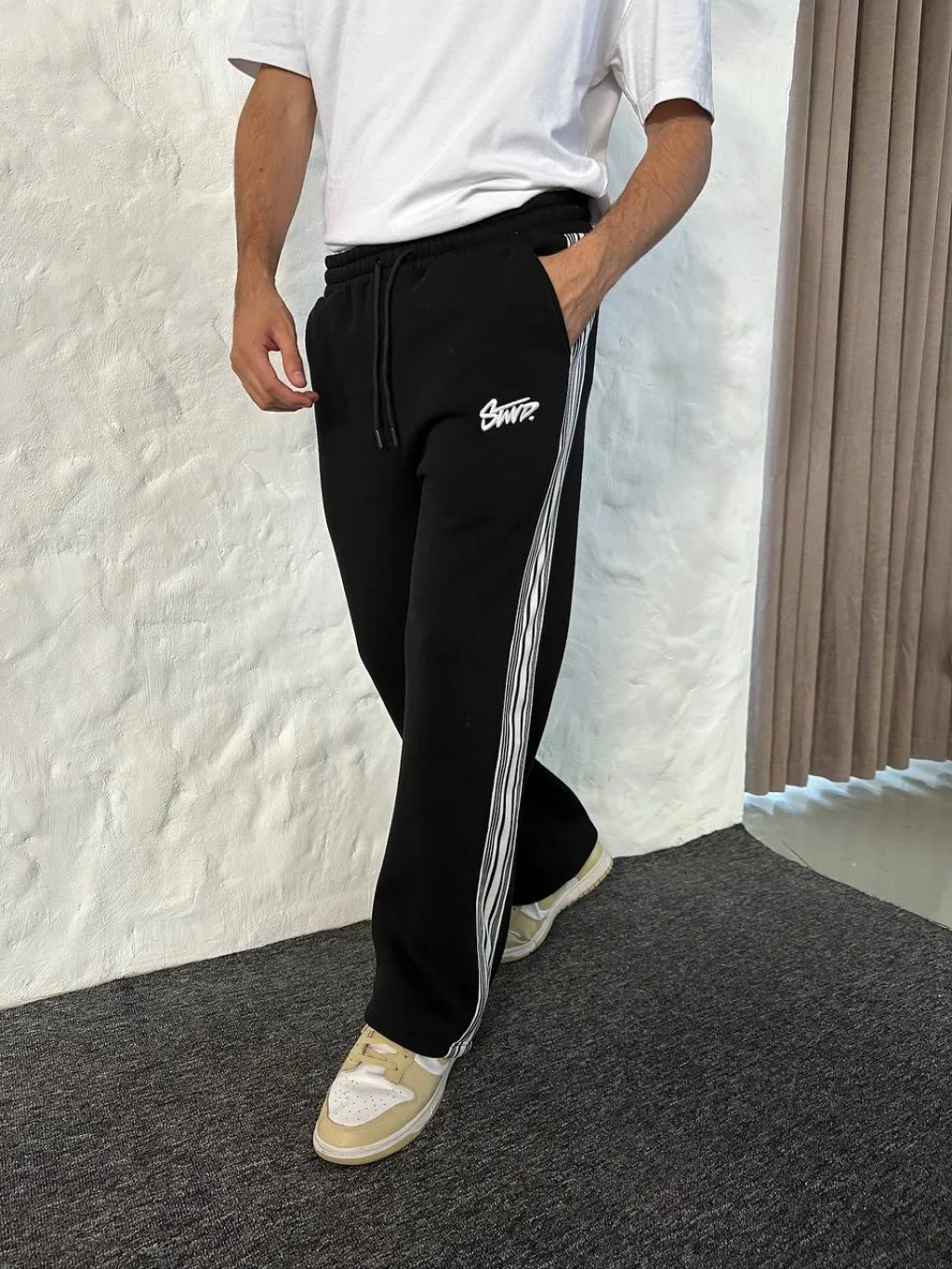Siyah Çapraz Çift Şerit Oversize Eşofman