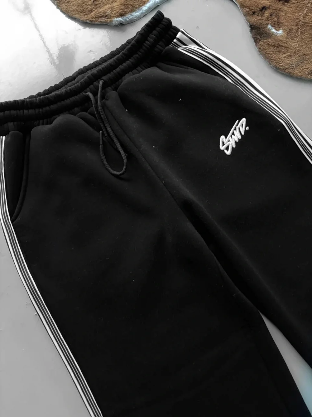 Siyah STWD Şeritli Unisex Oversize Eşofman