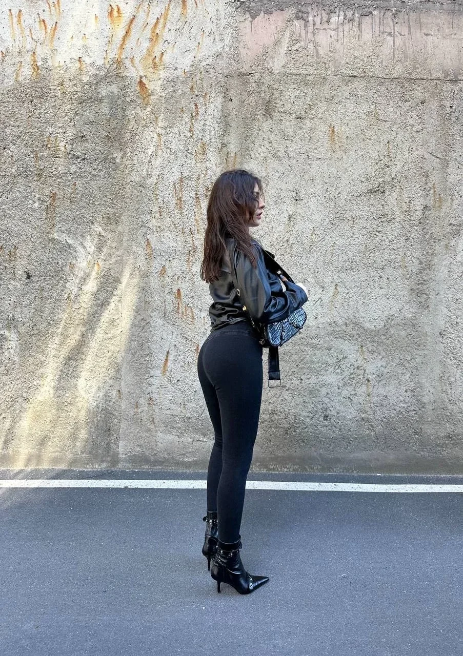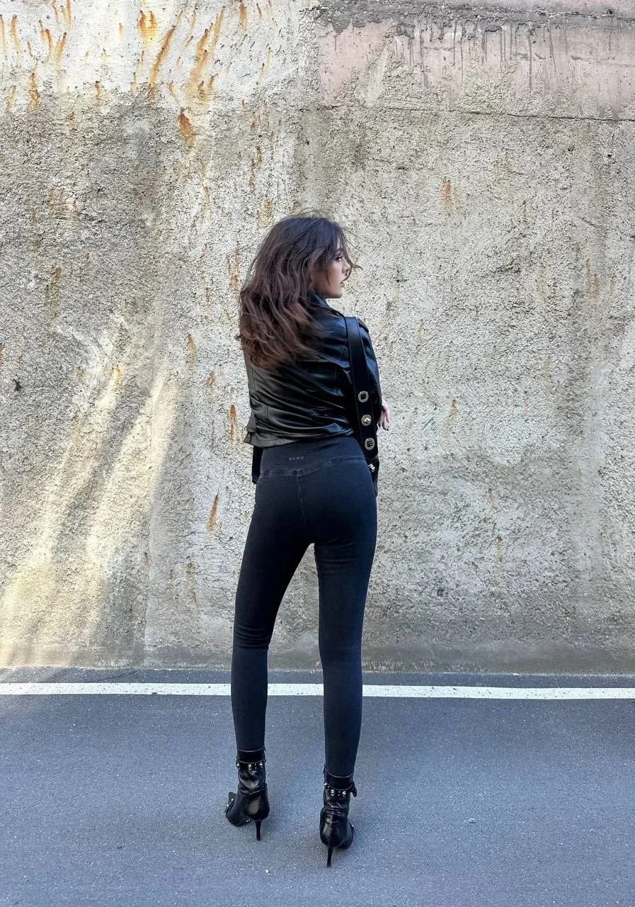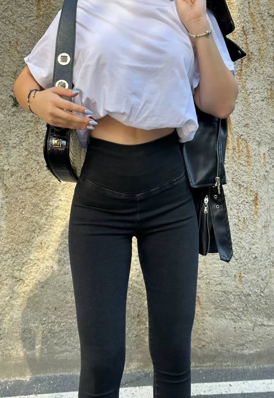 Siyah Yüksek Bel En Boy Likralı Kot Tayt