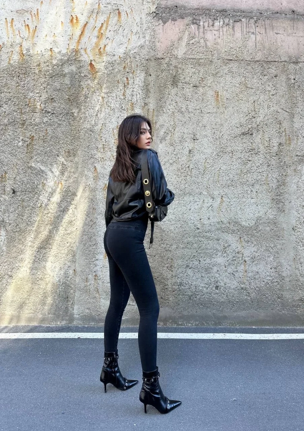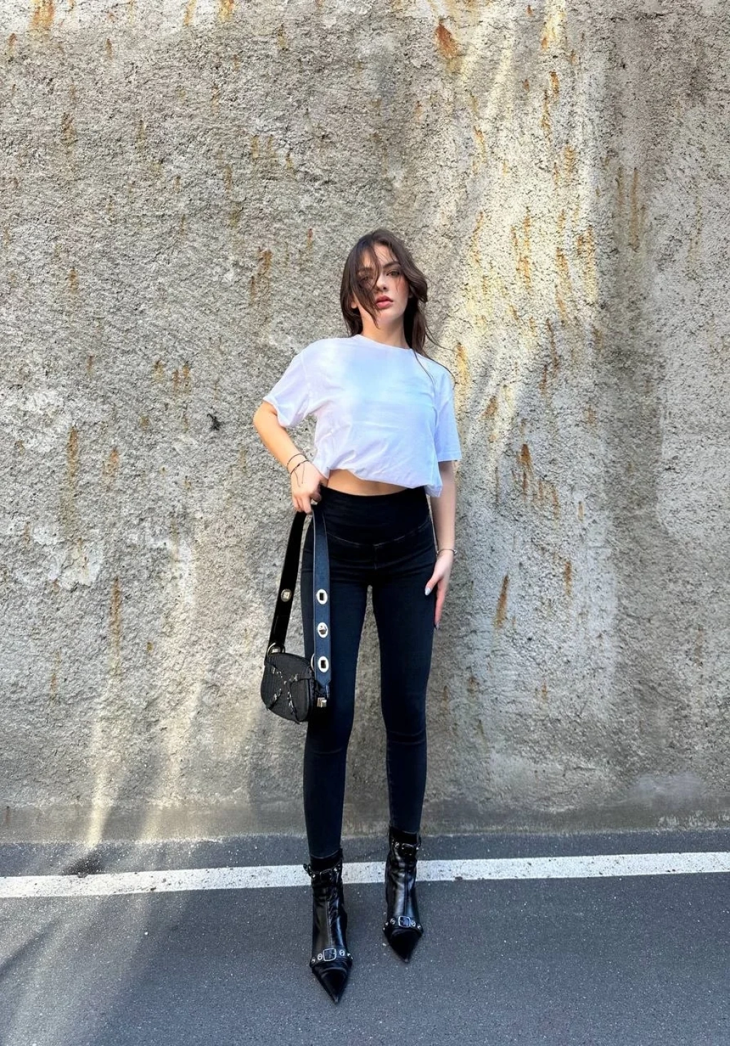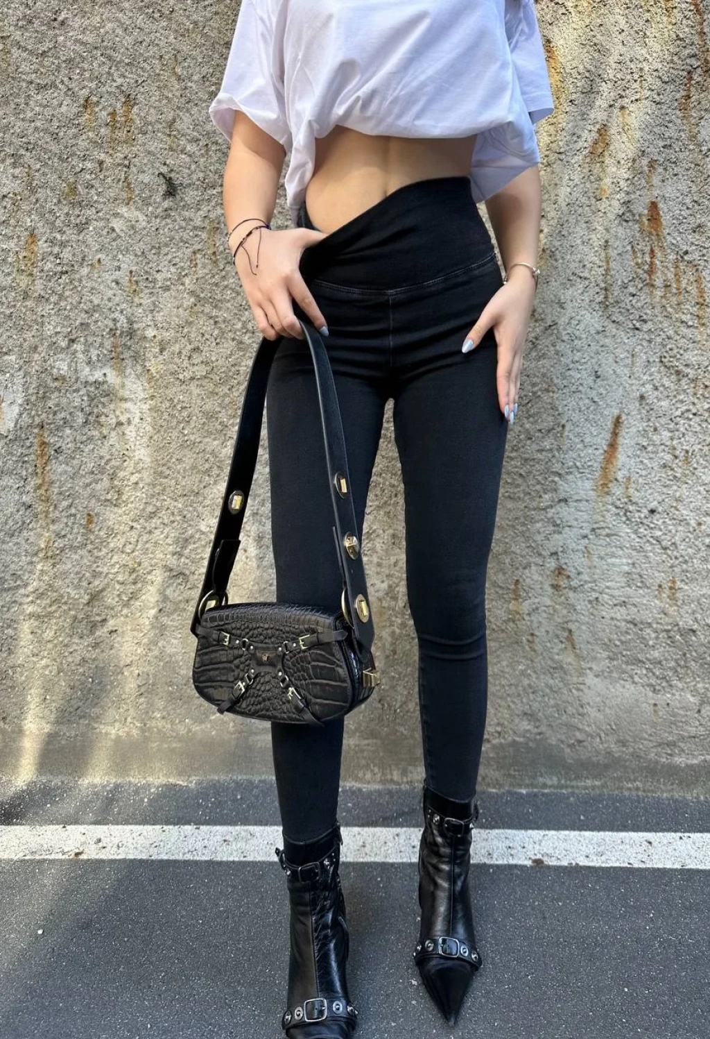 Siyah Yüksek Bel En Boy Likralı Kot Tayt
