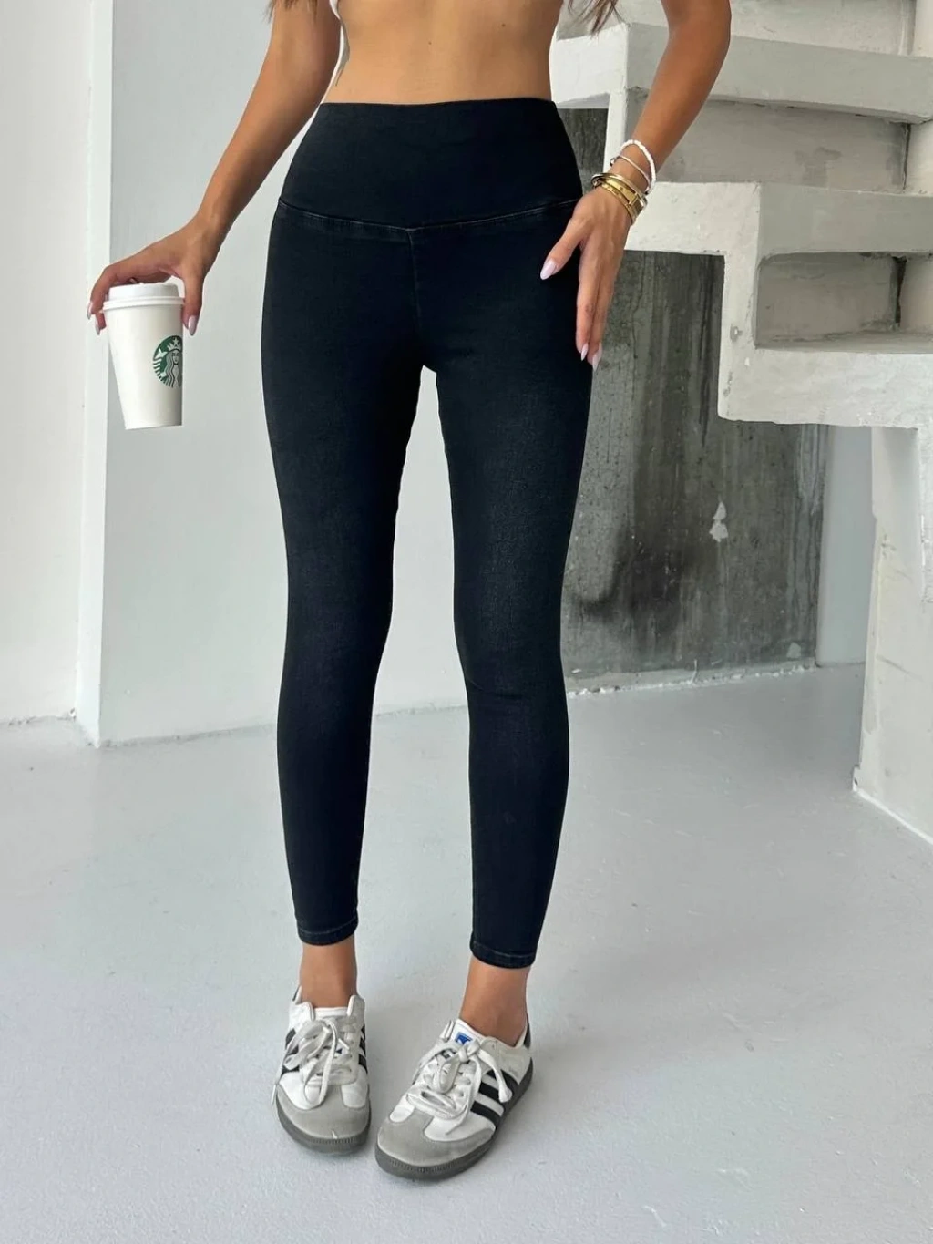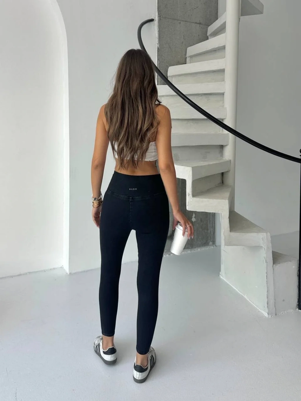 Siyah Yüksel Bel İnceltici ve Sıkılaştırıcı Likralı Kot Tayt