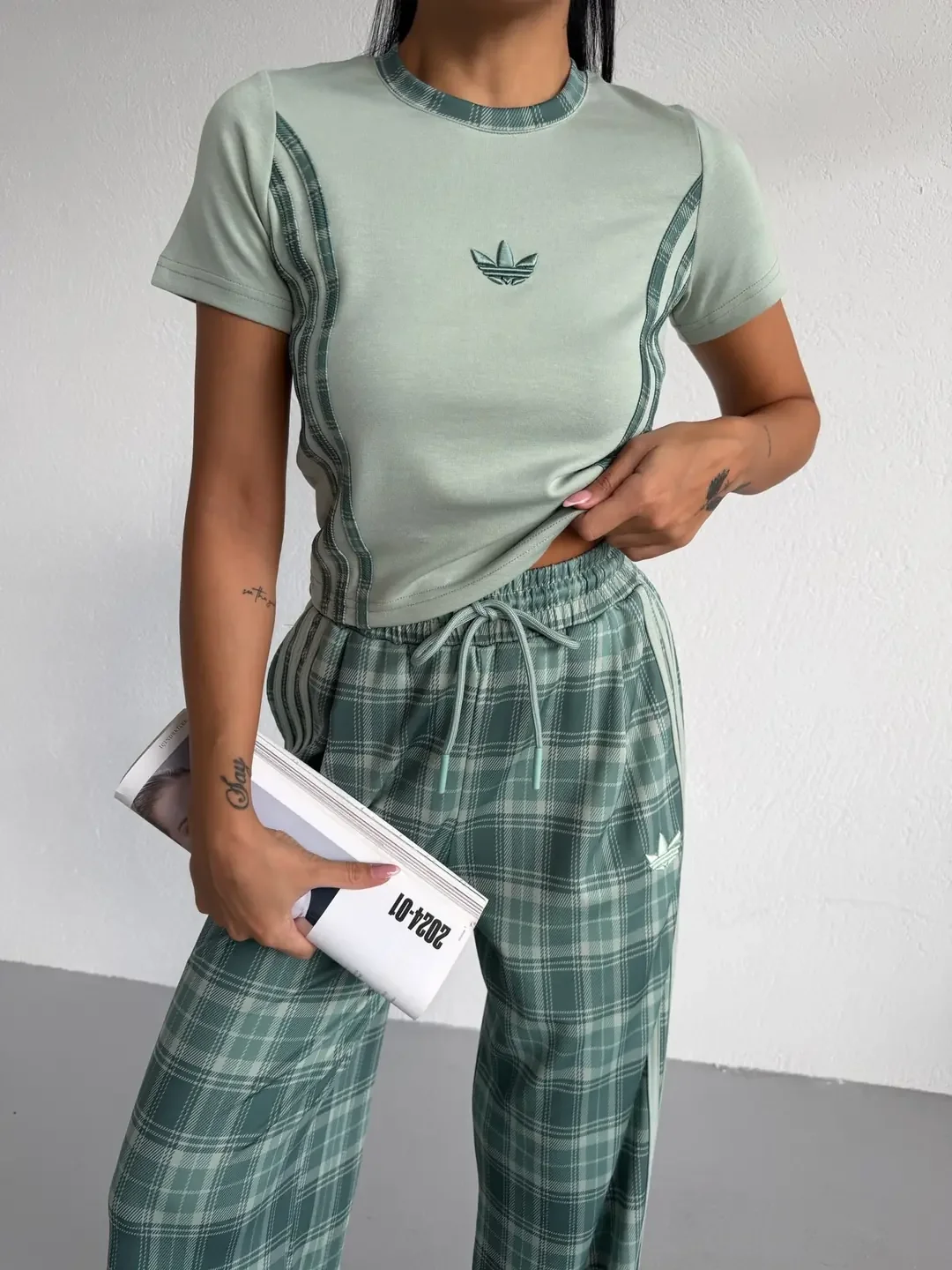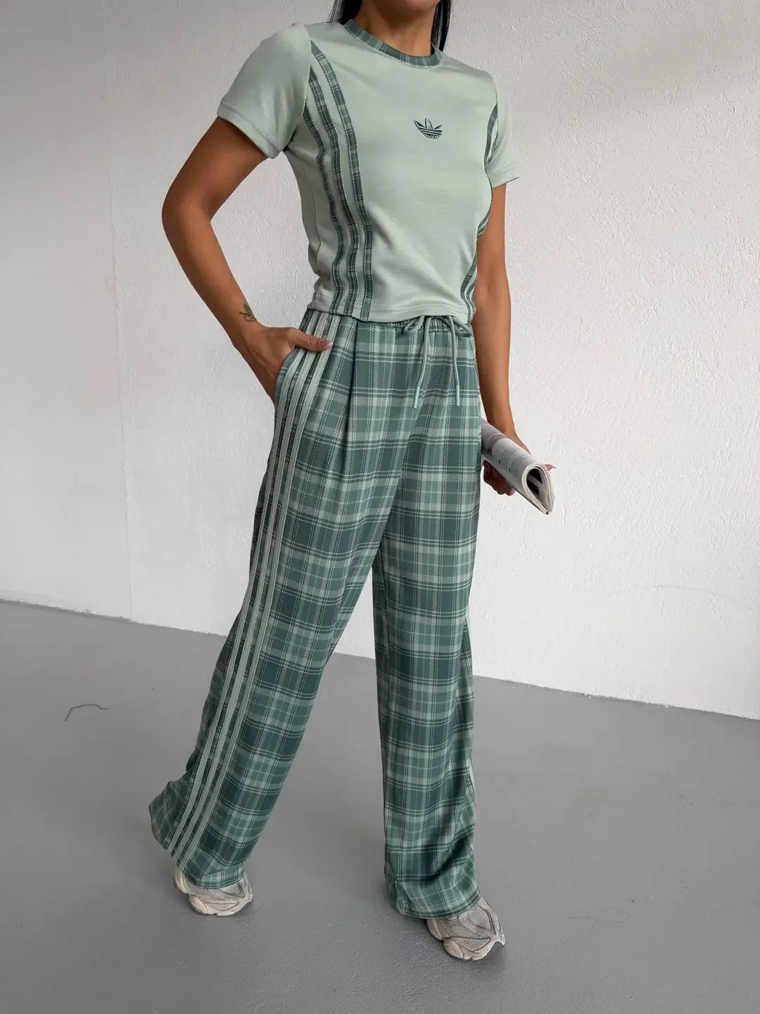 • Yeşil Adidas Ekose Eşofman Takım