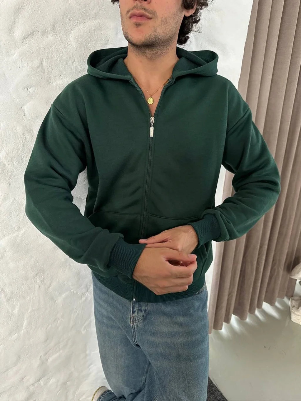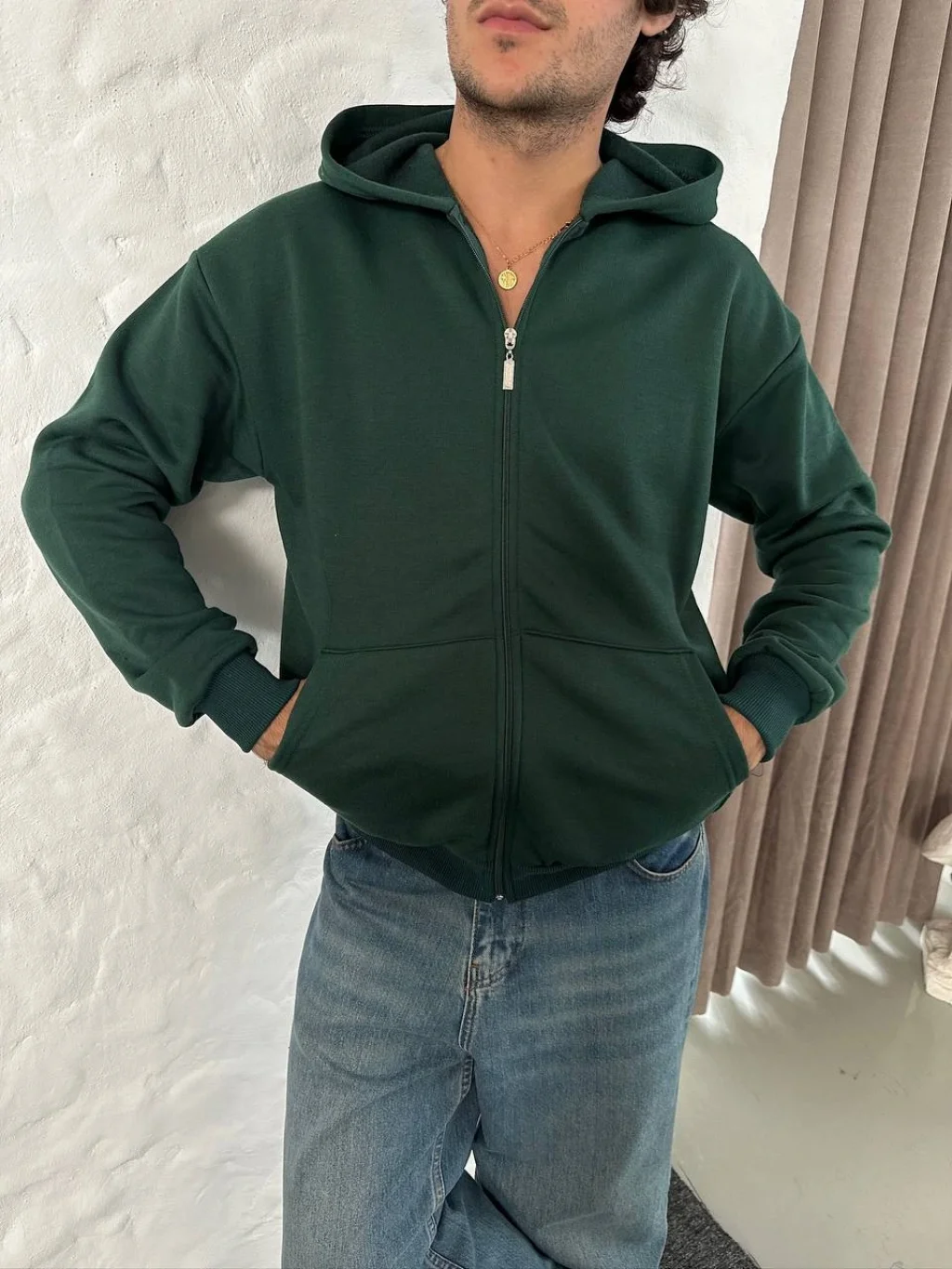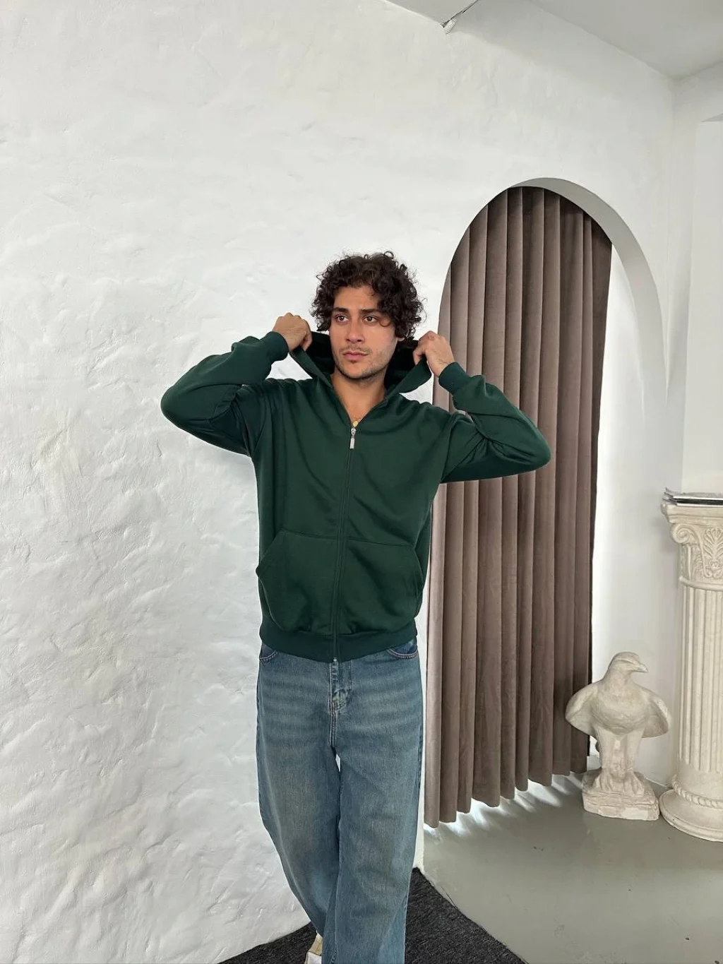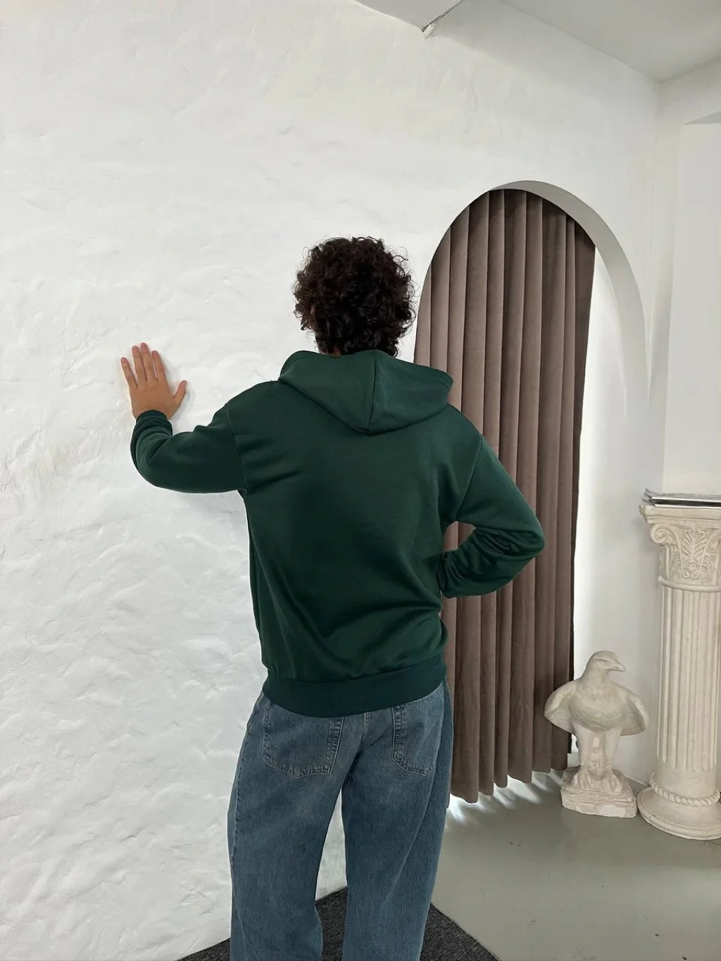 Yeşil Basic Kapşonlu Unisex Oversize Sweat