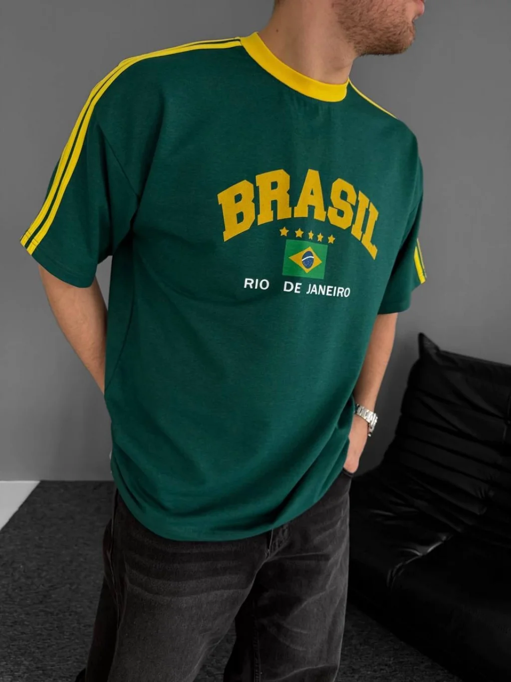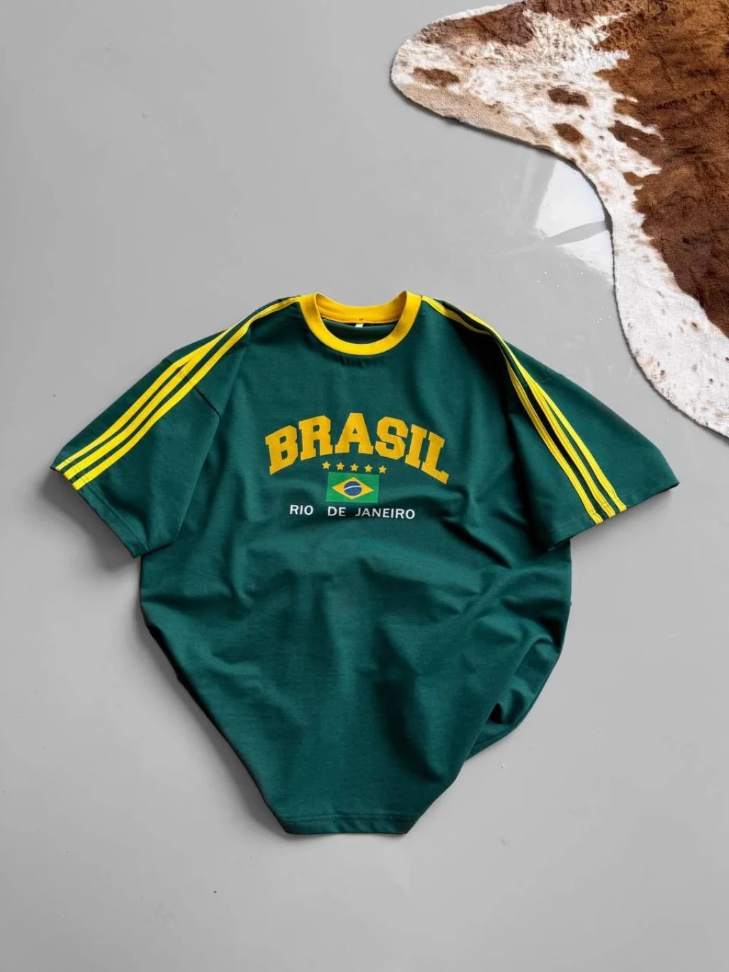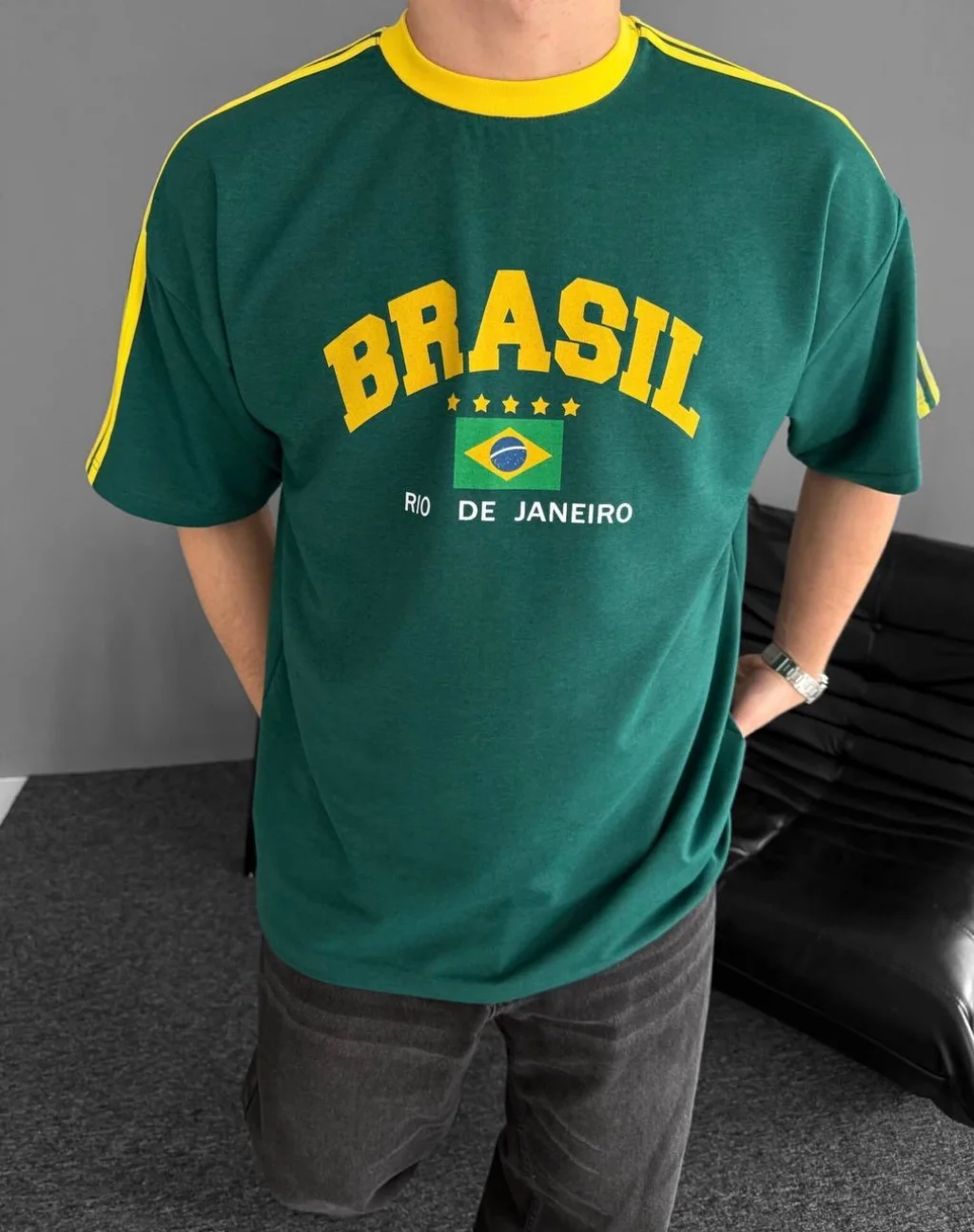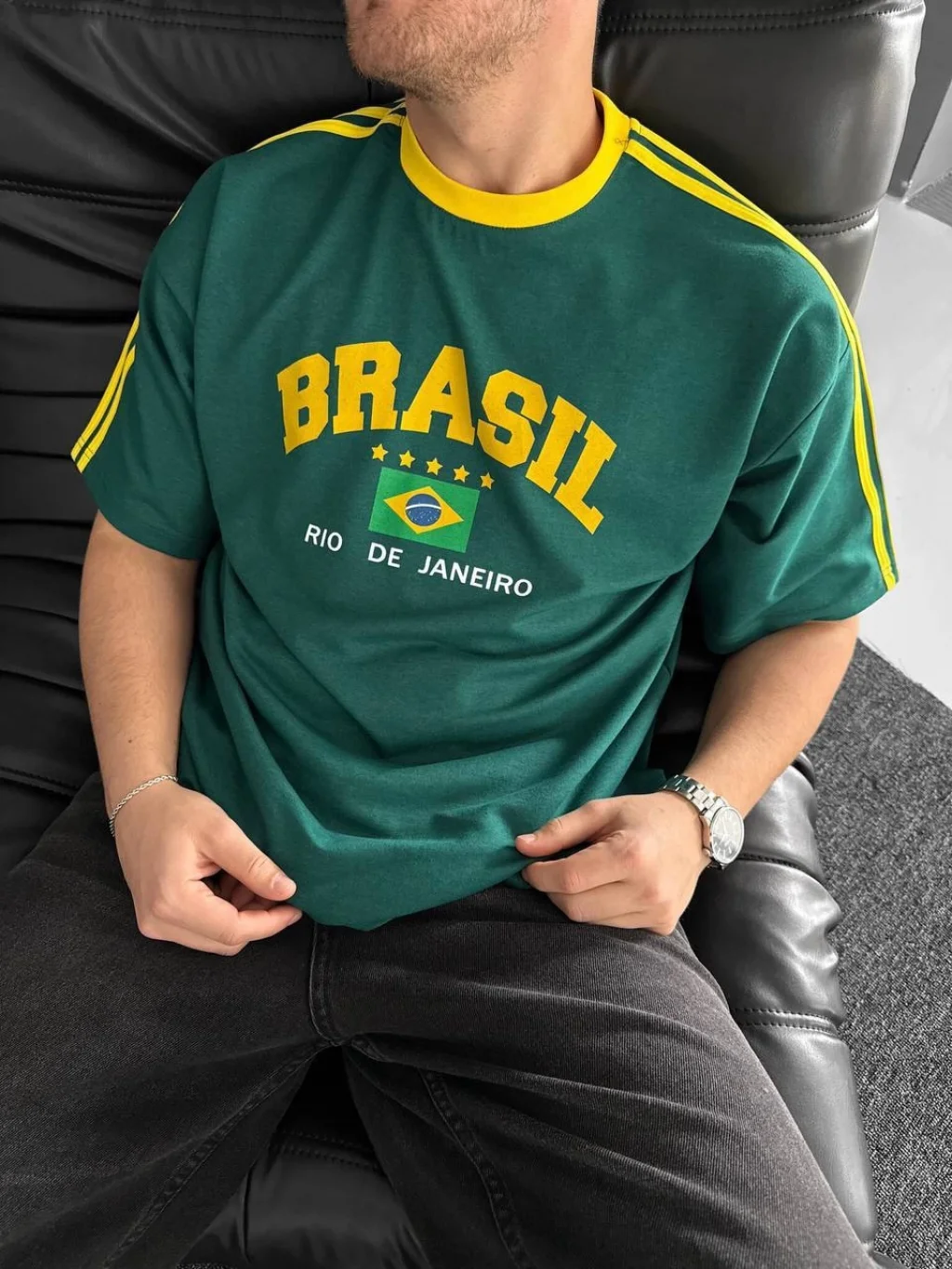 Yeşil Brasil Oversize Unisex Bisiklet Yaka Tshirt