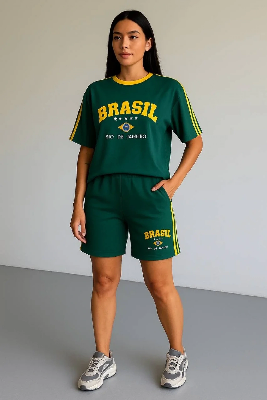 Yeşil Brasil Oversize Unisex Şortlu Takım