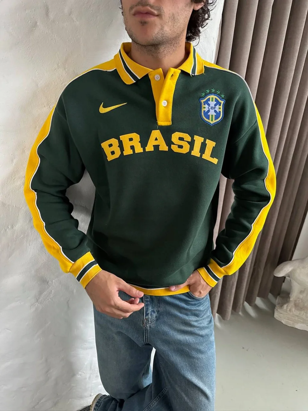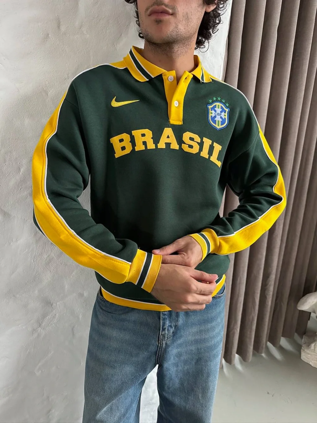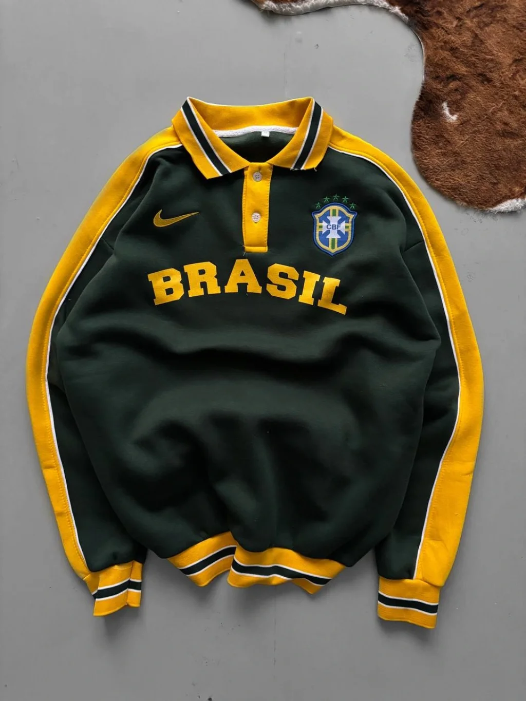 Sarı Brasil Polo Yaka Unisex Oversize Sweat