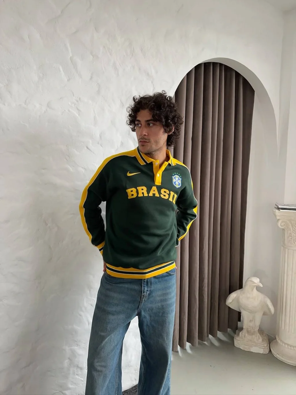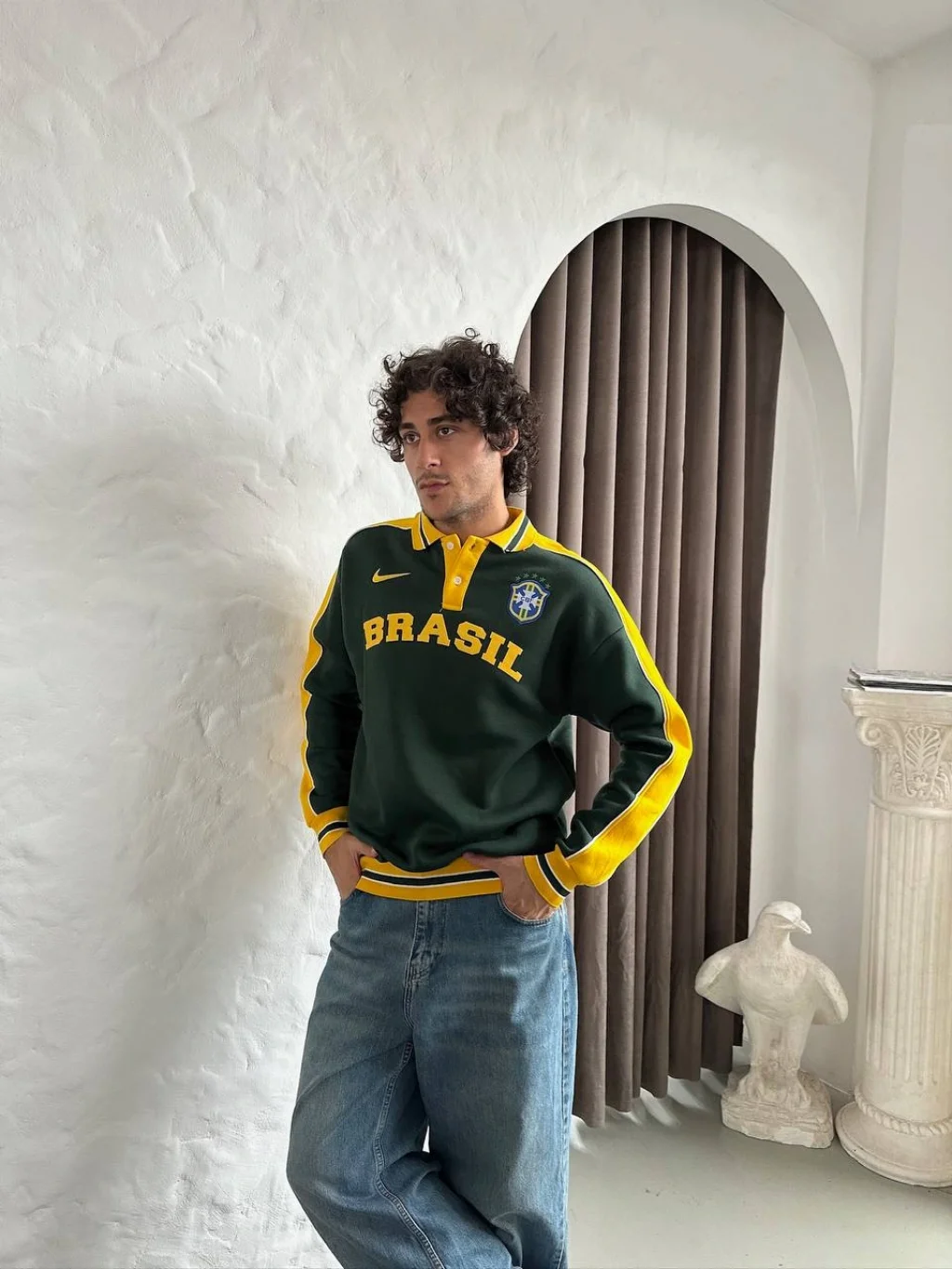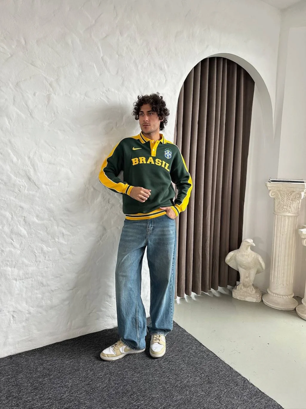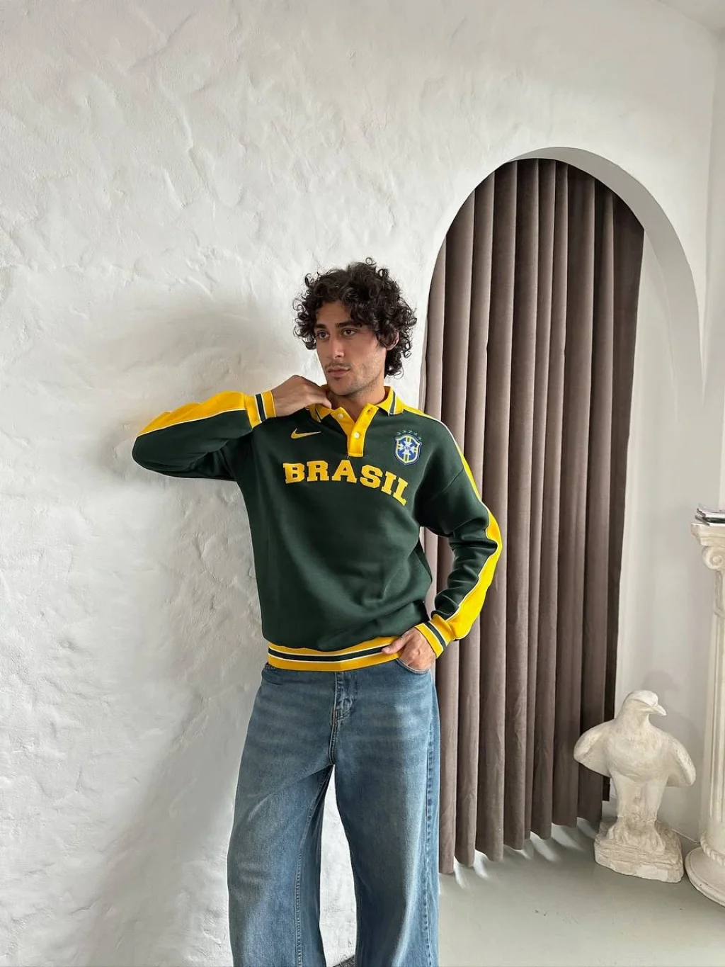 Sarı Brasil Polo Yaka Unisex Oversize Sweat