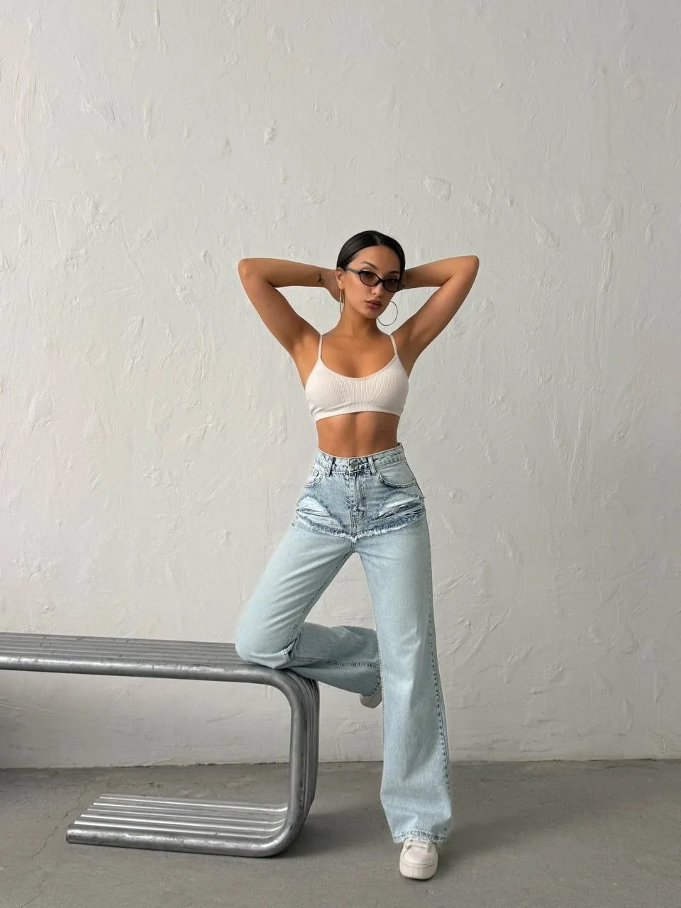Stil Önerisi: Pantolonun bel detayını ortaya çıkarmak için kısa üstler (crop top) ile kombinlenmesi tavsiye edilir.